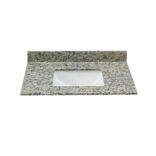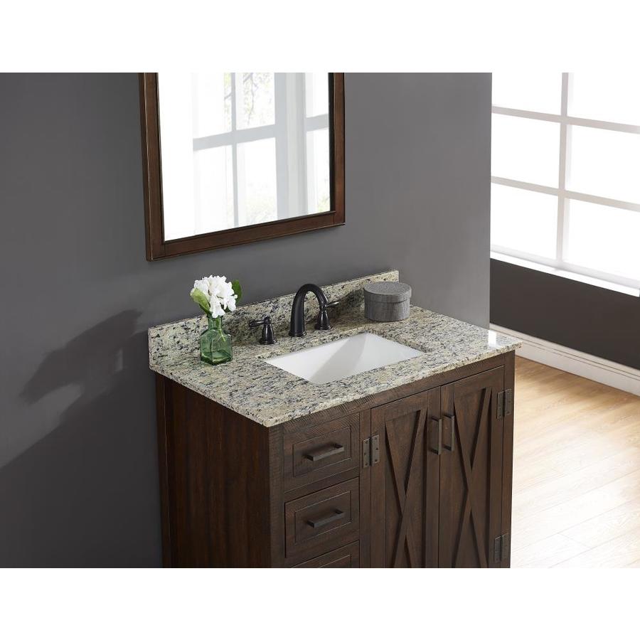 Natural Santa Cecilia Light granite collection provides a natural color tone for bathroom dcor Attached stylish rectangular white vitreous china undermount bowl with safety overflow hole The square flat edge profile has a unique and transitional appearance Top pre-drilled for 8-inch widespread faucet for easy installation (faucet not included) 4-in high backsplash included to help protect walls from water damage Fits 36in W x 21in D vanity Side splash available, sold separately(Item#932497)