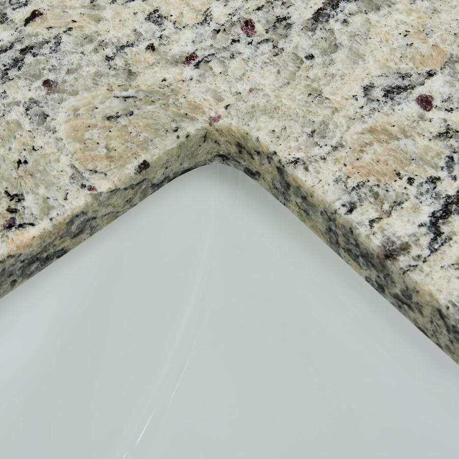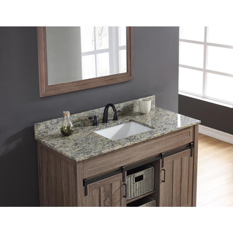 Natural Santa Cecilia Light granite collection provides a natural color tone for bathroom dcor Attached stylish rectangular white vitreous china undermount bowl with safety overflow hole The square flat edge profile has a unique and transitional appearance Top pre-drilled for 8-inch widespread faucet for easy installation (faucet not included) 4-in high backsplash included to help protect walls from water damage Fits 48in W x 21in D vanity Side splash available, sold separately(Item#932497)