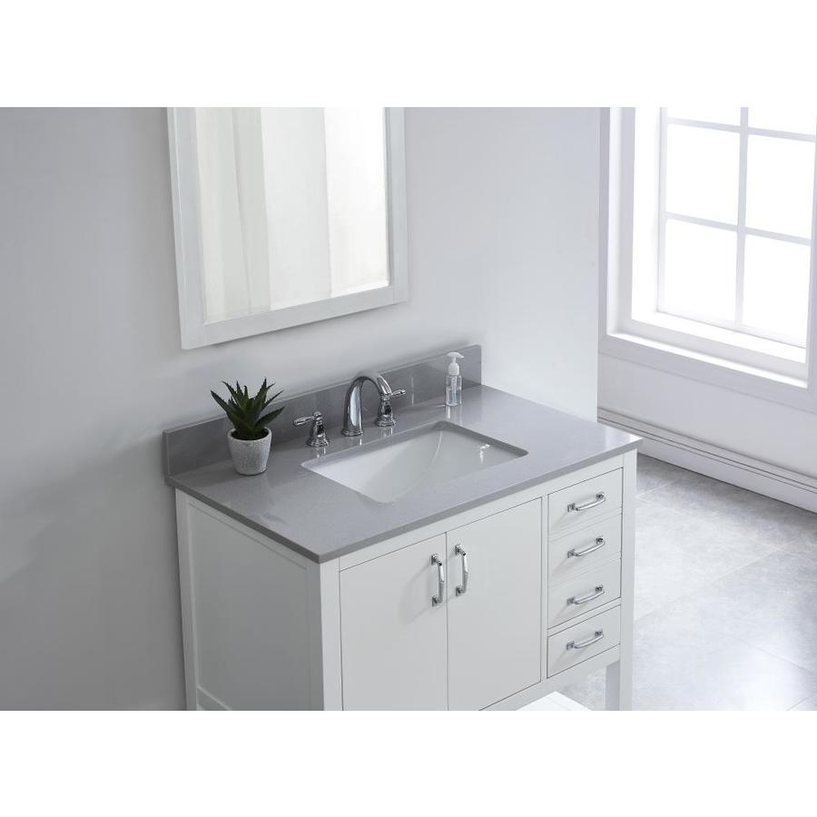 New Meridian Gray Engineered Marble provides a stunning and fashionable bathroom Attached stylish rectangular white vitreous china undermount bowl with safety overflow hole The square flat edge profile has a unique and transitional appearance Top pre-drilled for 8-inch widespread faucet for easy installation (faucet not included) 4-in high backsplash included to help protect walls from water damage Fits 30in W x 21in D vanity Side splash available, sold separately(Item#932512)