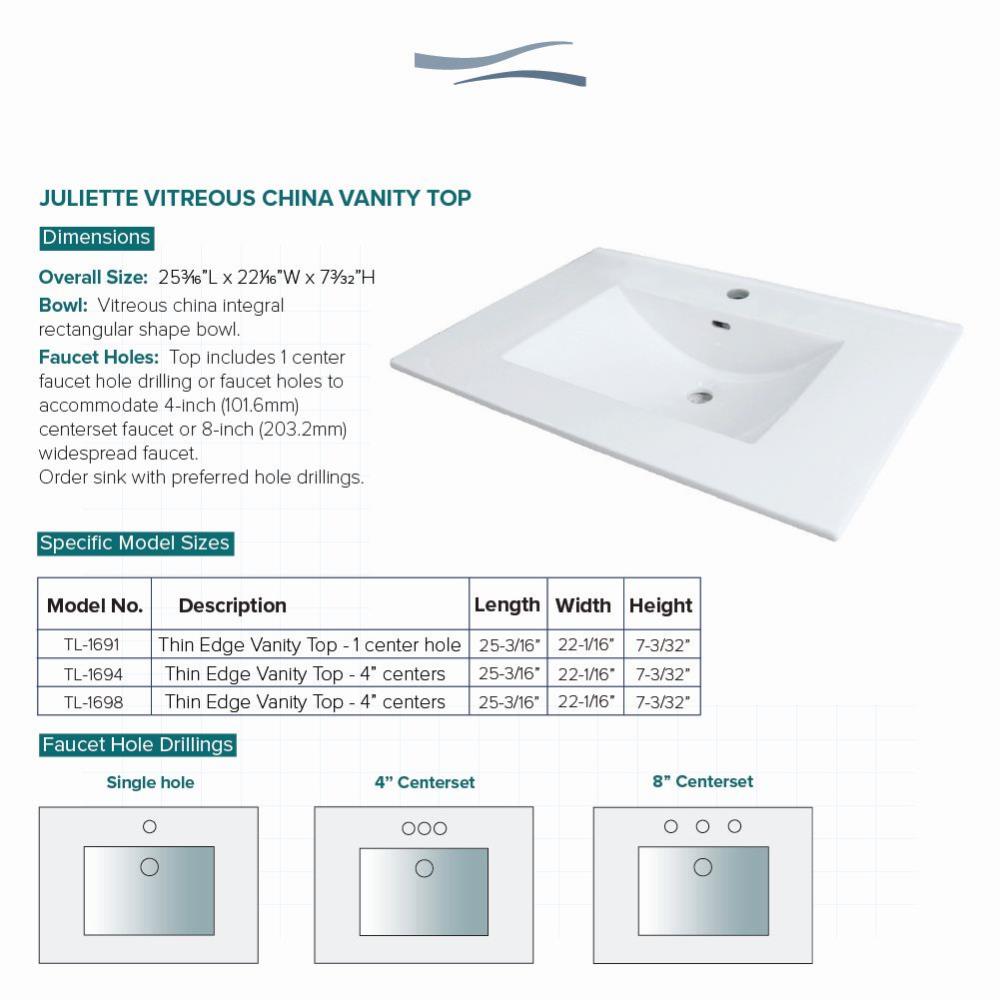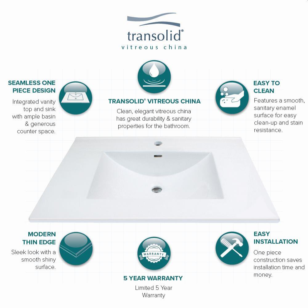 Transolid Juliette 25-in White Vitreous China Single-Hole Bathroom Vanity Top with Integral Sink