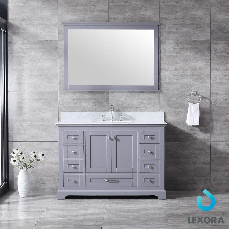 Lexora Dukes 48-in Dark Grey Single Sink Bathroom Vanity with White Carrera Marble Marble Top (Mirror Included)