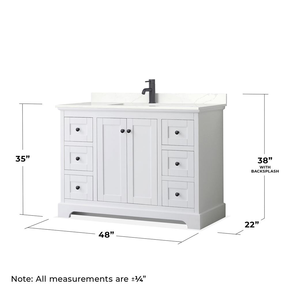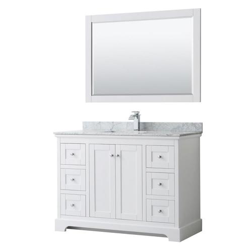 Wyndham Collection Avery 48-in White Single Sink Bathroom Vanity with White Carrara Marble Top, Mirror Included