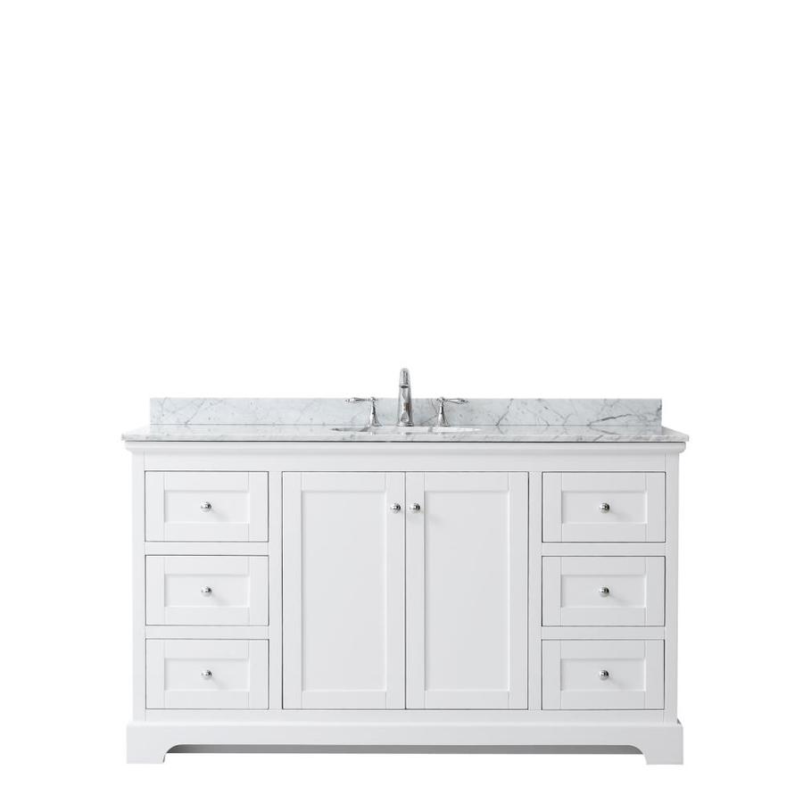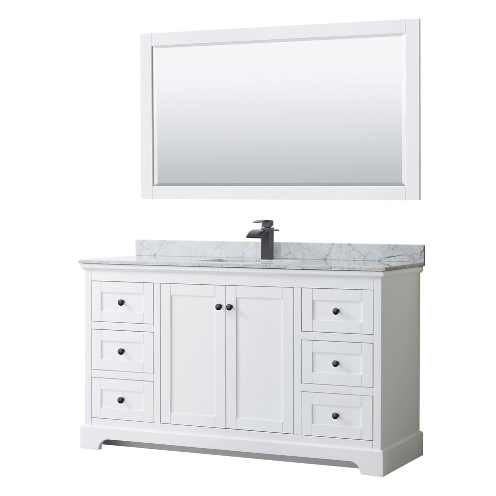 Wyndham Collection Avery 60-in White Single Sink Bathroom Vanity with White Carrara Marble Top