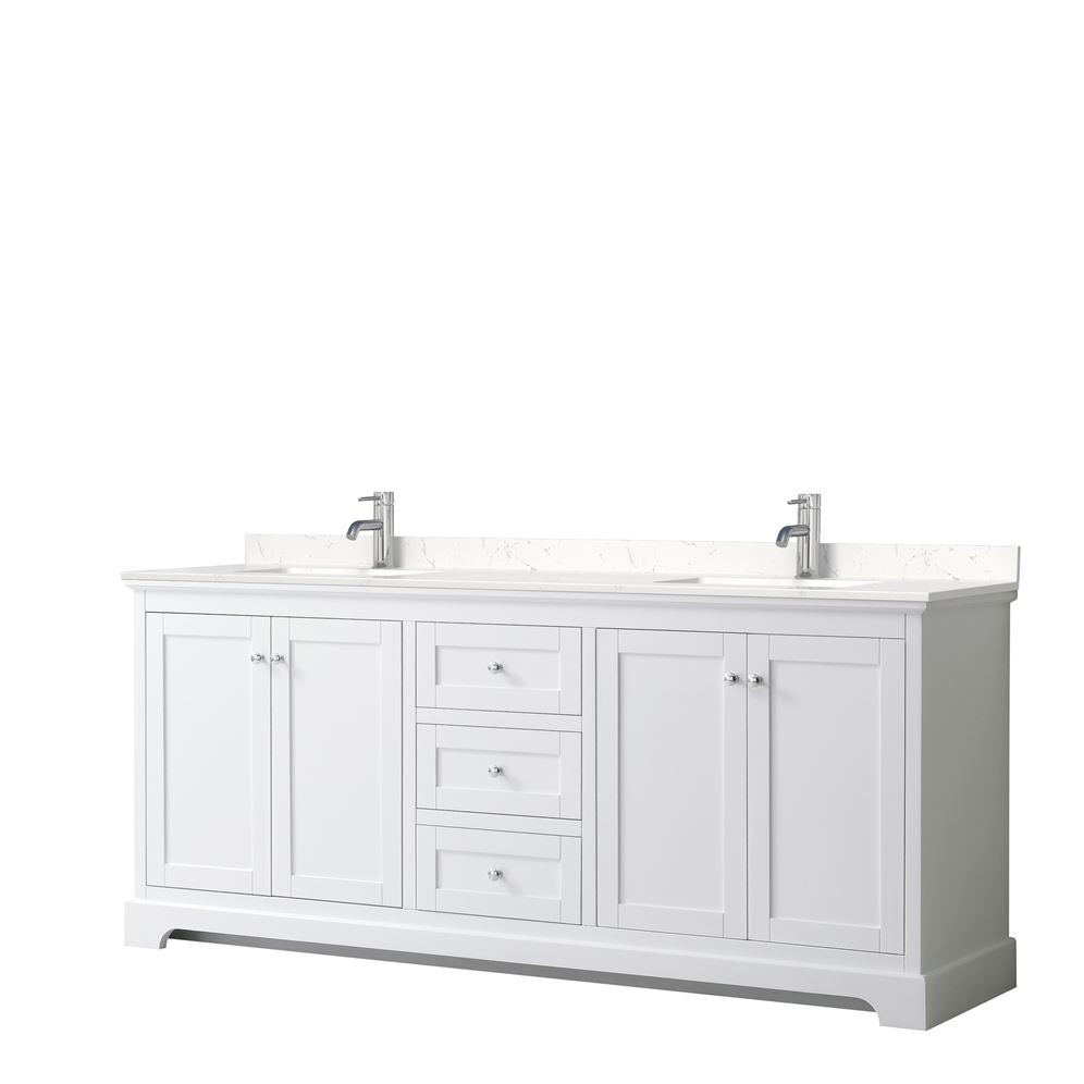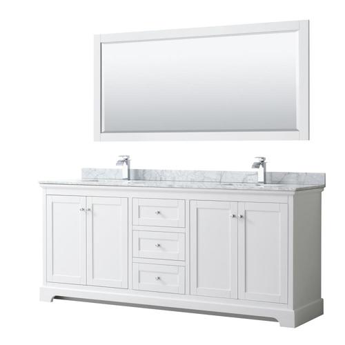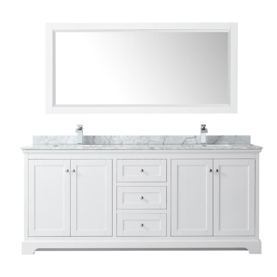 Wyndham Collection Avery 80-in White Double Sink Bathroom Vanity with White Carrara Marble Top, Mirror Included