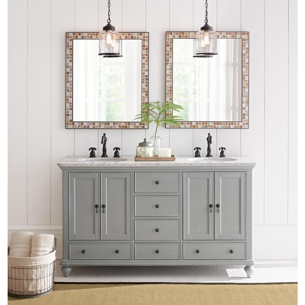 Newport 61 in. W x 21-1/2 in. D Double Bath Vanity in Pewter with Granite Vanity Top in Grey