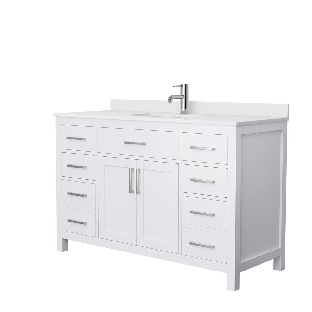 Beckett 54 in. W x 22 in. D Single Vanity in White with Cultured Marble Vanity Top in Carrara with White Basin