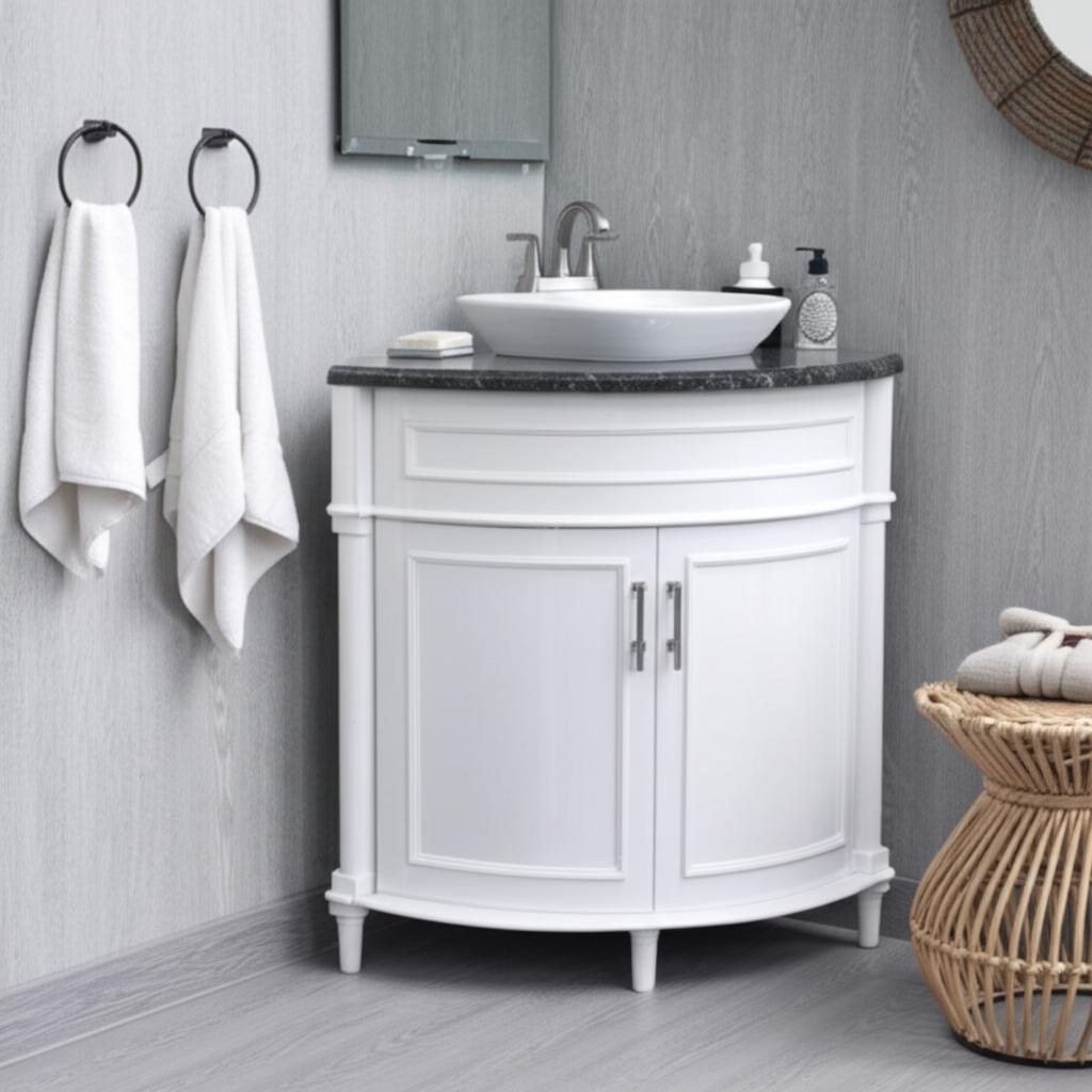 Upgrade your bathroom with the Aberdeen 32-inch corner vanity and experience the perfect blend of style and functionality.