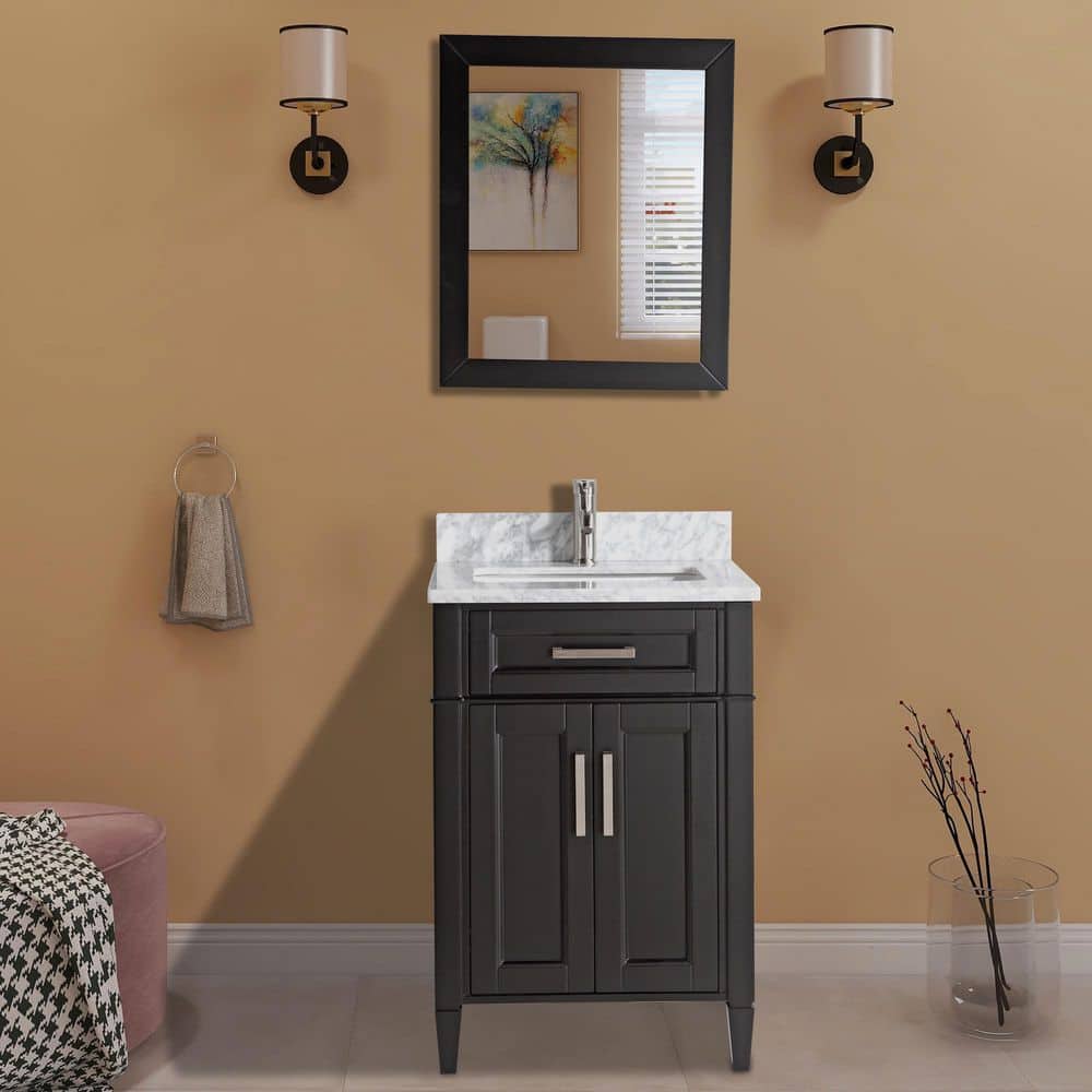 Vanity Art Savona 24 in. W x 22 in. D x 36 in. H Bath Vanity in Grey with Vanity Top in White with White Basin and Mirror