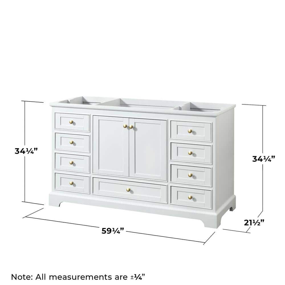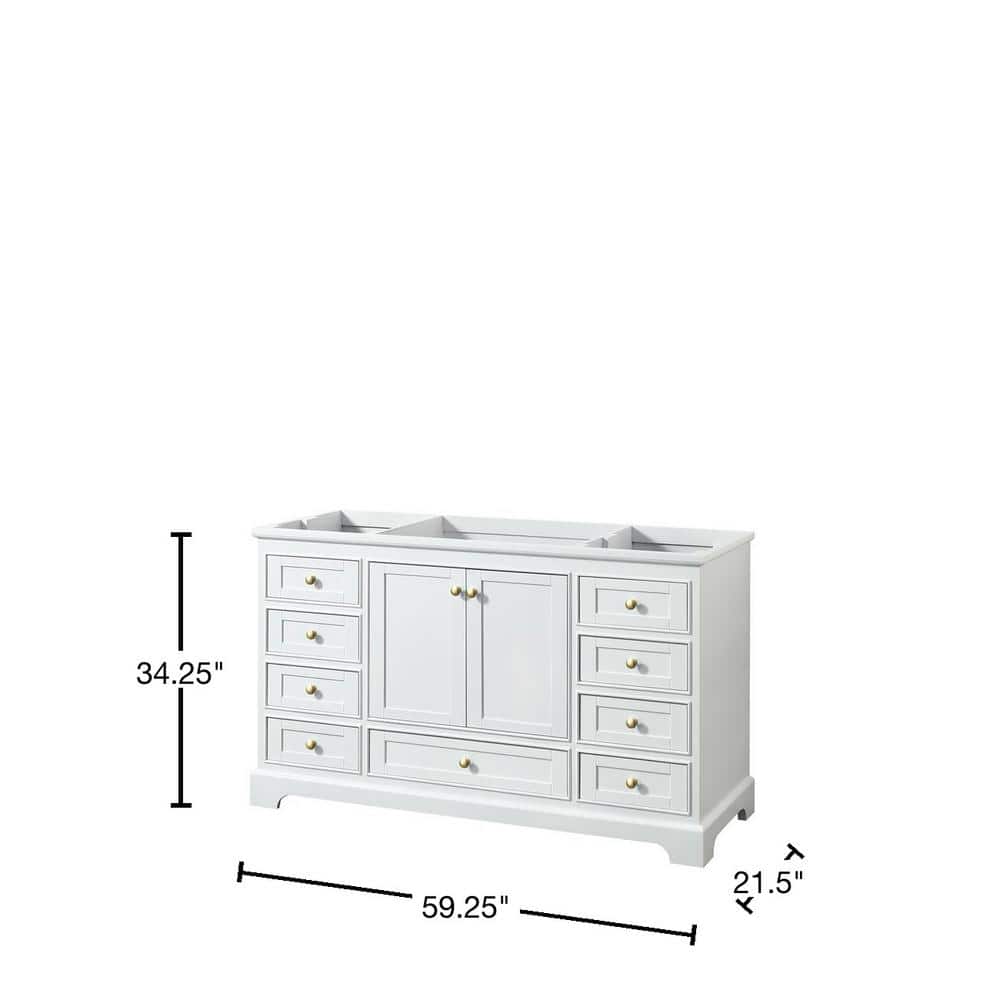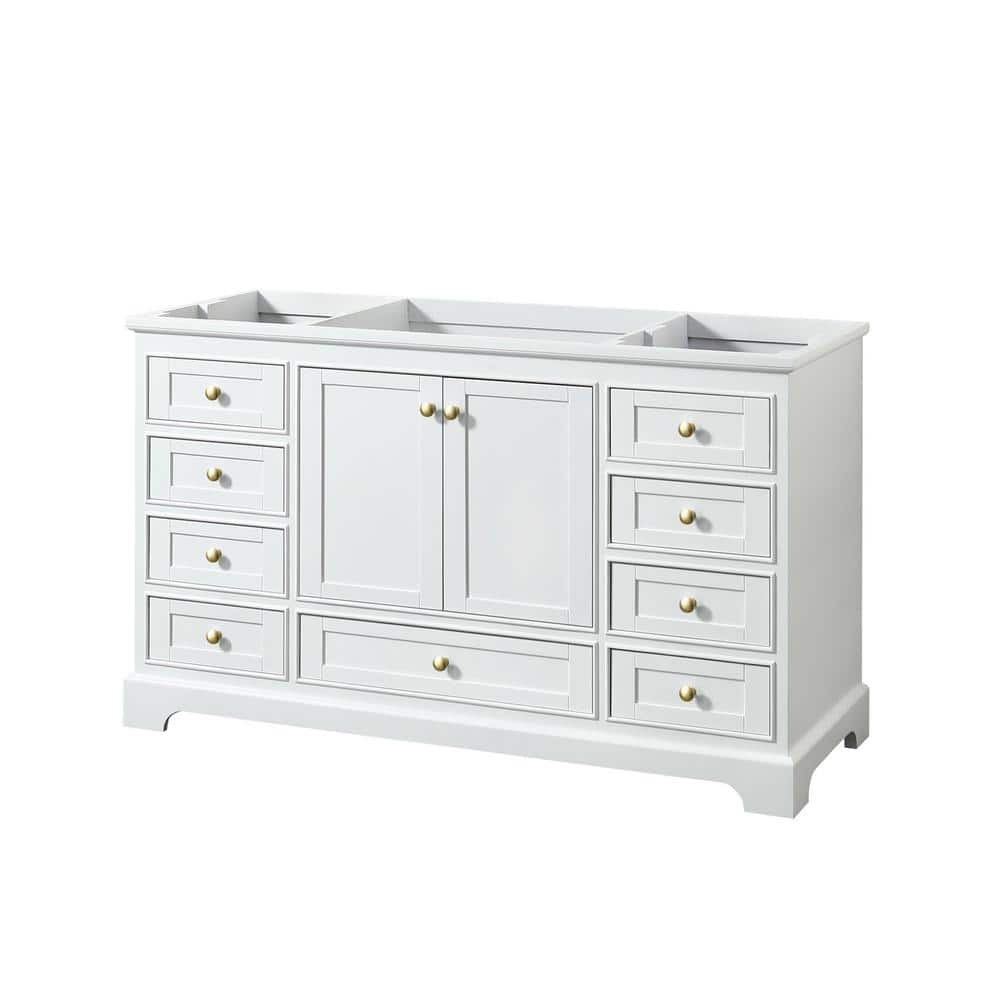Wyndham Collection Deborah 59.25 in. Bathroom Vanity Cabinet, White with Brushed Gold Trim