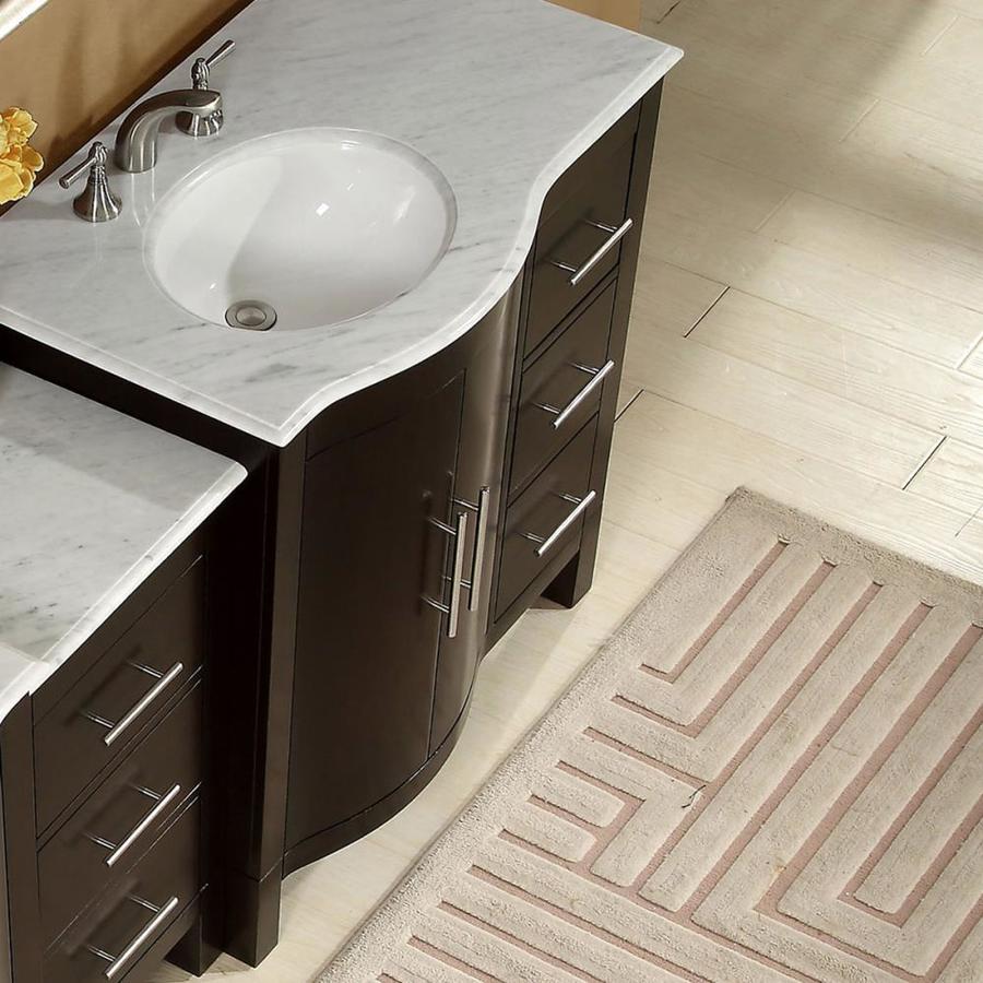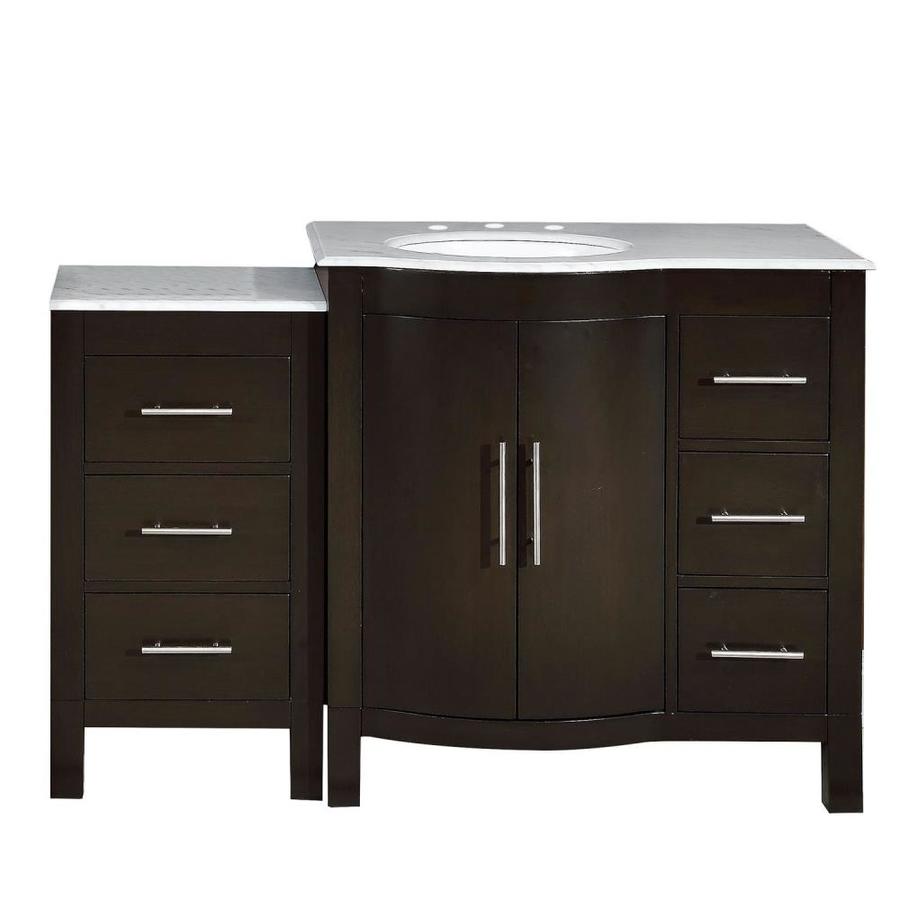 Silkroad Exclusive 53.5-in Dark Walnut Single Sink Bathroom Vanity with Carrara White Natural Marble Top