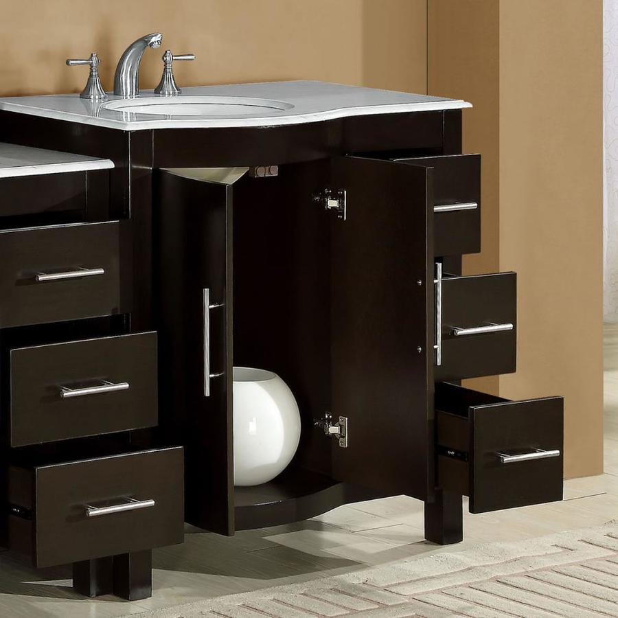 Overall dimensions (inch): 53.5w x 22d x 36h Modern bathroom single sink vanity cabinet Comes with Carrara White Marble countertop Comes with white ceramic undermount sink Natural stone, solid wood structure and TSCA title VI certified panels Pre-drilled for 8-in widespread faucet Drain and faucet are not included