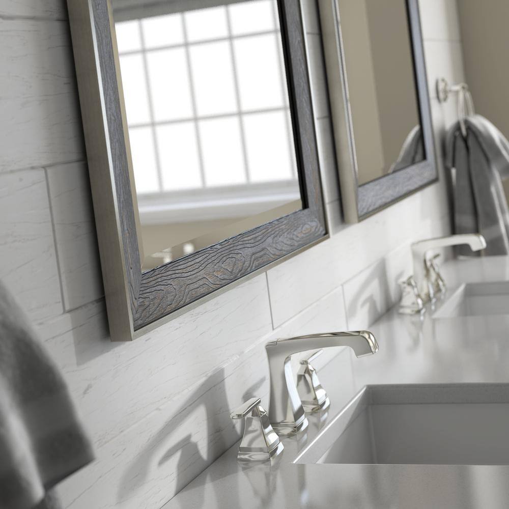 Upgrade your vanity with this Delta Custom Reflections rectangular frame in Weathered Wood. Designed for M1 medium mirrors, it snaps onto compatible Delta mirror glass and resists moisture for reliable use in bathrooms. Distressed wood-grain texture with brushed metal trim adds depth and a refined, coastal-modern look.