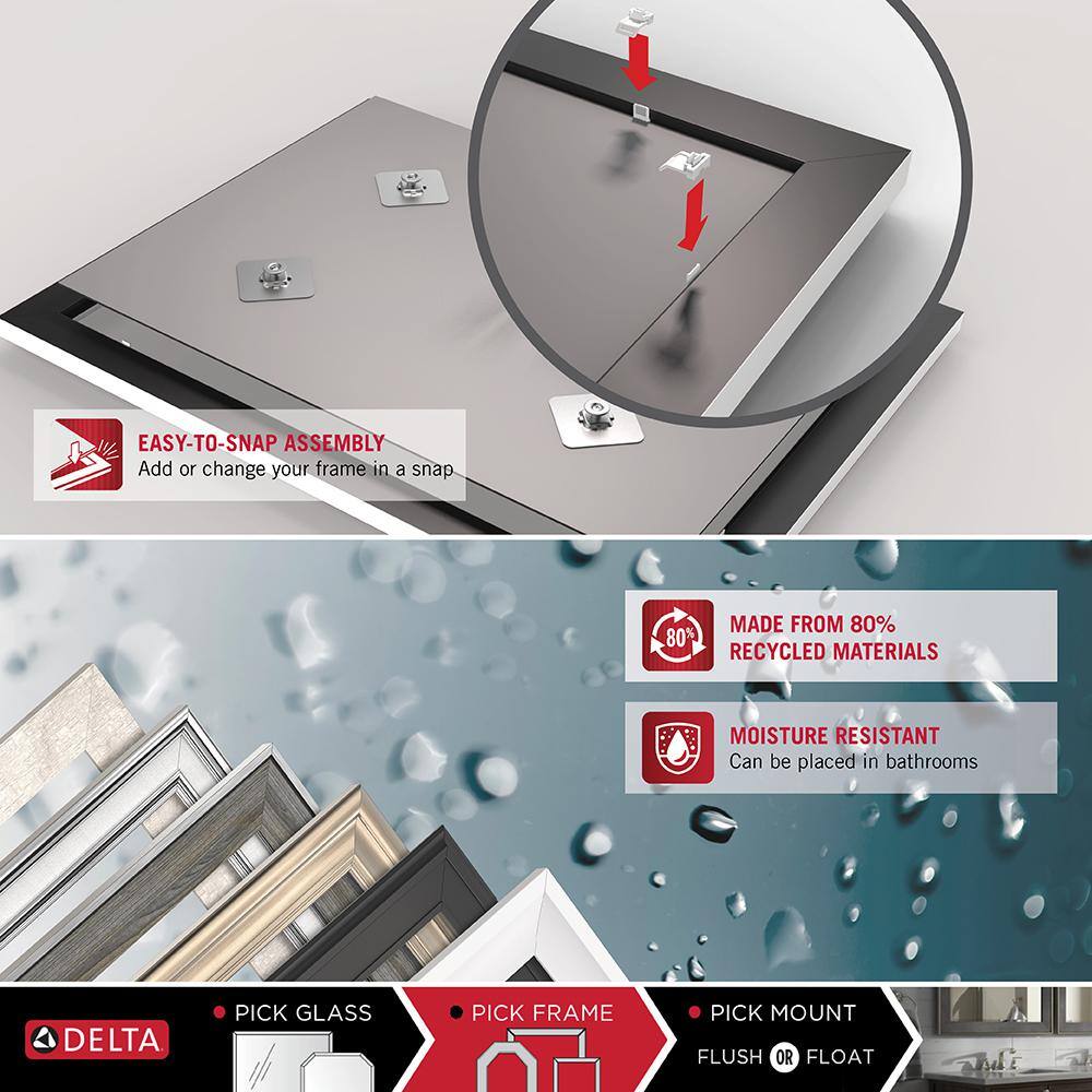 • Easy-to-Snap Assembly: Includes 8 frame clips that snap onto Delta Custom Reflections mirror glass