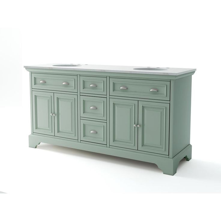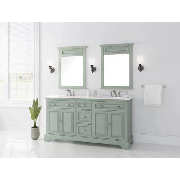 Sadie 67 in. W x 21.5 in. D Vanity in Antique Light Cyan with Marble Vanity Top in Natural White with White Sinks