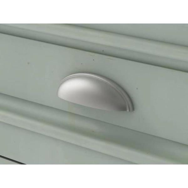 • Transitional design features modest crown molding, slim trim, raised panels and scalloped toe kick