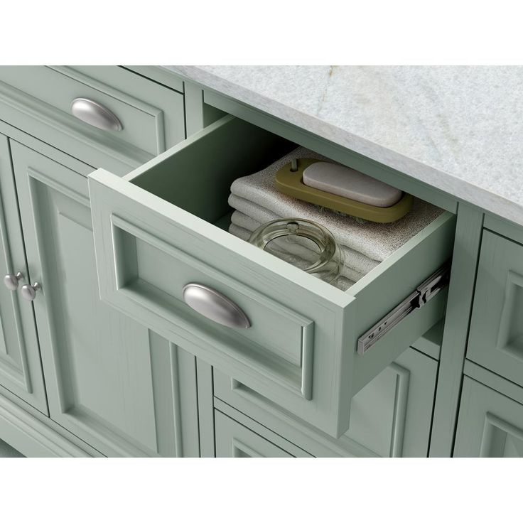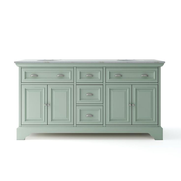 Featuring twin sinks, a column of drawers, and an adjustable shelf behind each pair of doors, the Sadie Double Vanity is a master suite must-have. With its subtly classic design features and dove grey finish, this vintage-inspired bathroom vanity brings functional storage plus luxury and charm to your space. A wide vanity top made of natural marble provides ample room for your morning prep essentials. Any swirling or veining you notice indicates the natural beauty of the stone and has no impact on its function or durability.