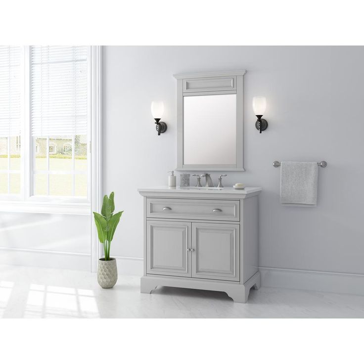Sadie 38 in. W x 21.5 in. D Vanity in Dove Grey with Marble Vanity Top in Natural White with White Sink