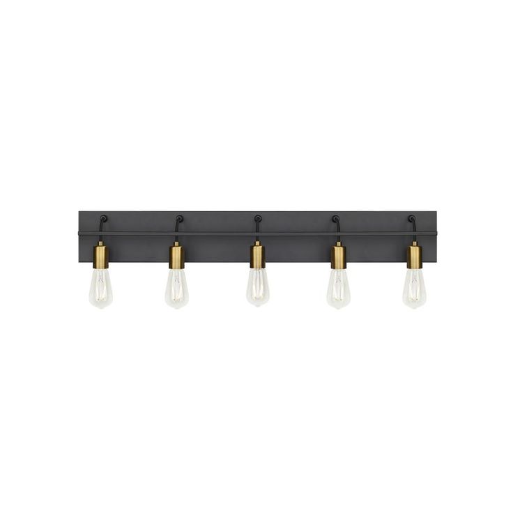 Tae 36 in. W 5-Light Black Industrial Metal Bathroom Vanity Light with Aged Brass Socket Cups and Black Cords