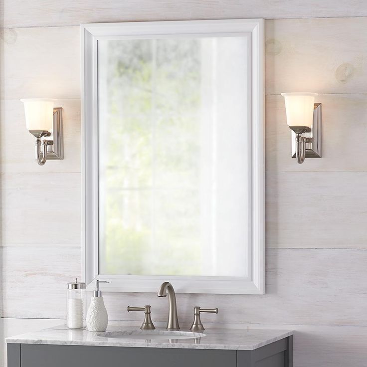 28 in. W x 40 in. H Framed Rectangular Anti-Fog Bathroom Vanity Mirror in White