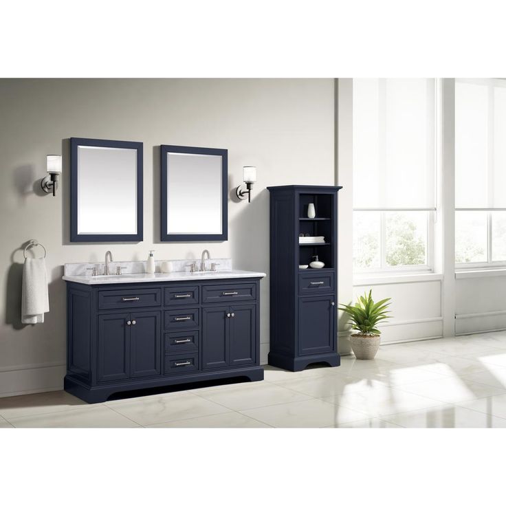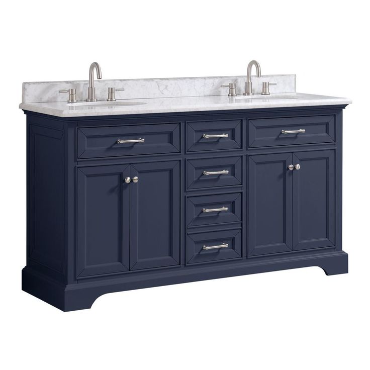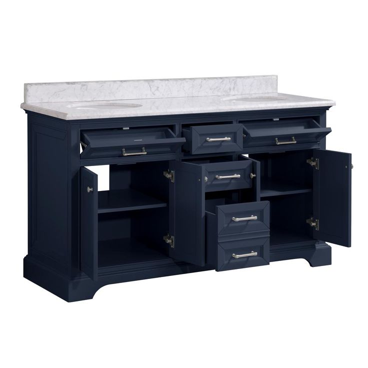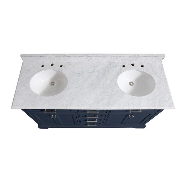 Windlowe 61 in. W x 22 in. D x 35 in. H Bath Vanity in Navy Blue with Carrara Marble Vanity Top in White with White Sink