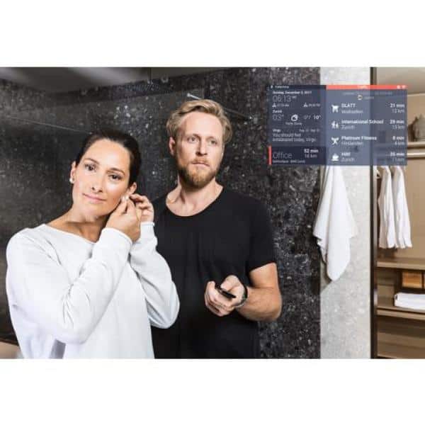 A: The mirror has personalizable widgets for up to four users, allowing for customized information and preferences.