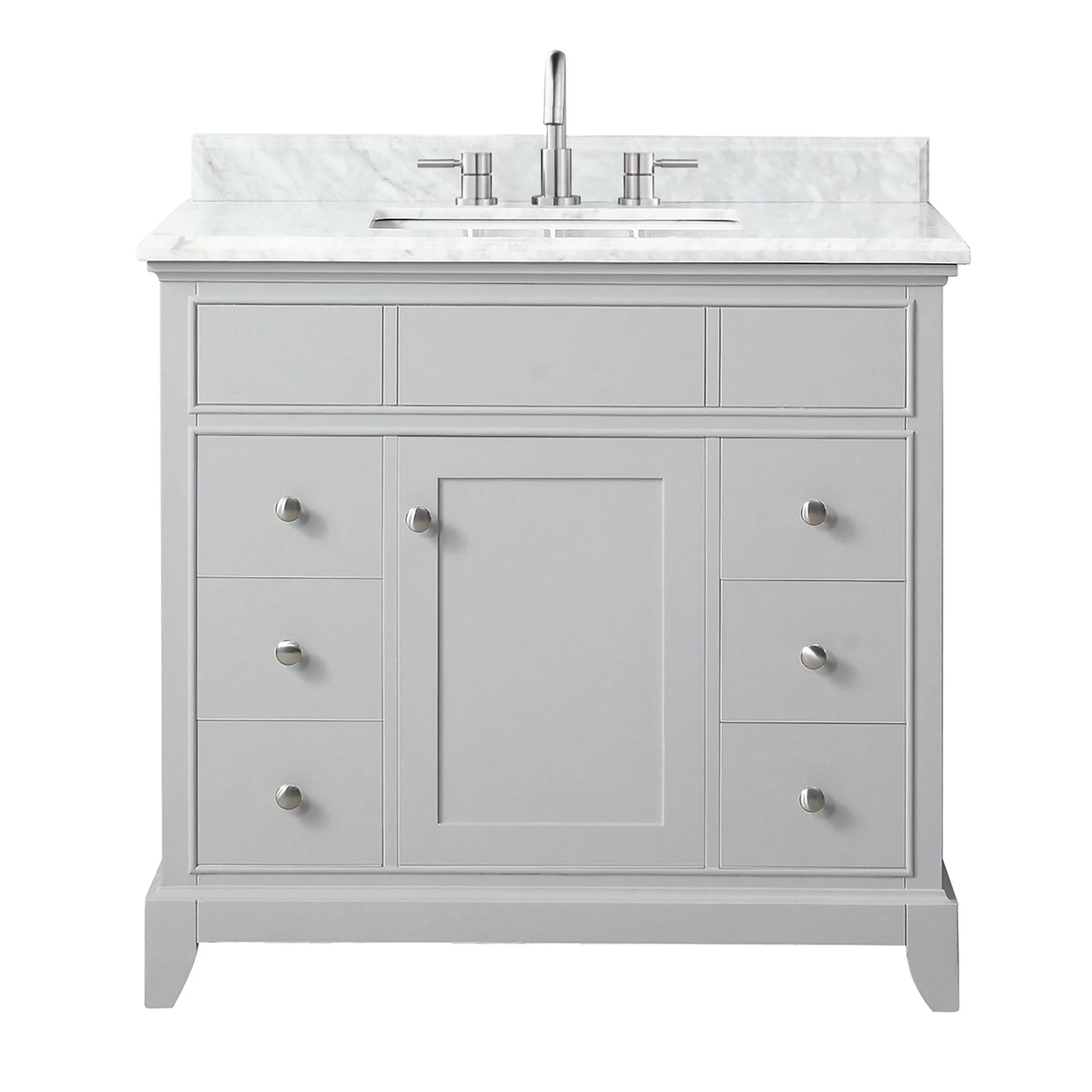 Bring boutique-hotel elegance home—add the Aurora 37-inch Vanity with Carrara Top to your bath remodel today.
