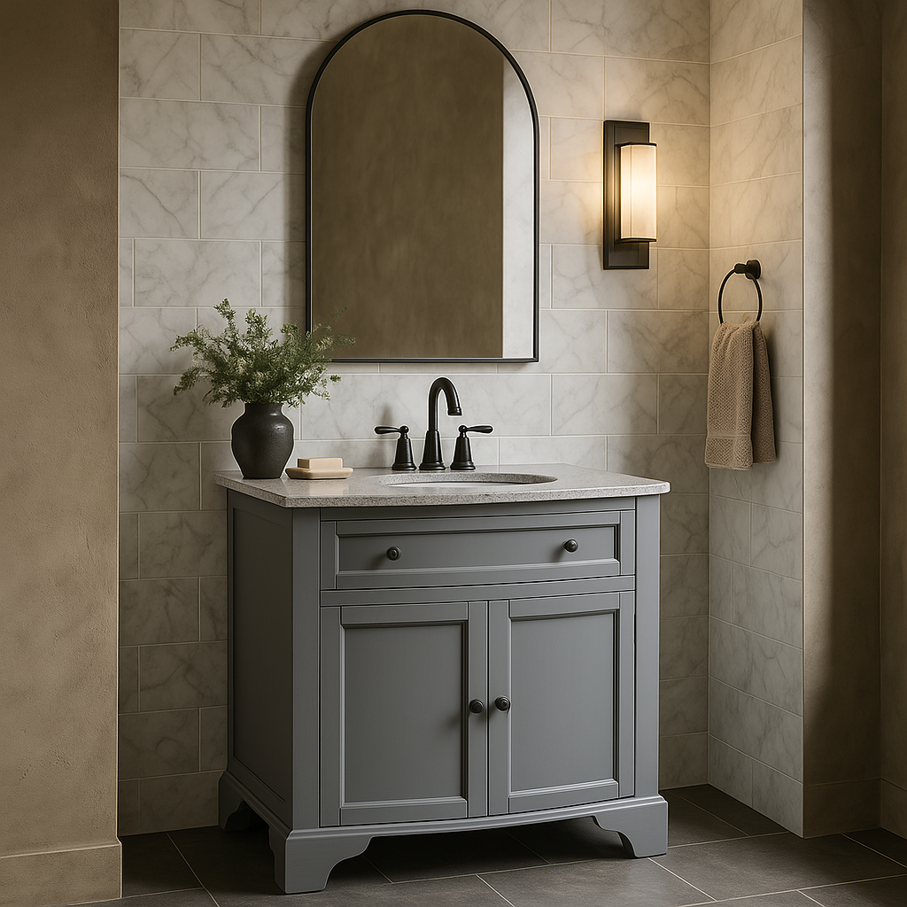 Transform your bathroom into a haven of sophistication with the Hamilton Bath Vanity. Its speckled gray granite top exudes timeless elegance, while the soft-close doors add a touch of modern convenience. Pair it with bronze hardware and coastal decor for a harmonious aesthetic. This vanity is not just a fixture; it's a statement of refined taste and luxurious living.