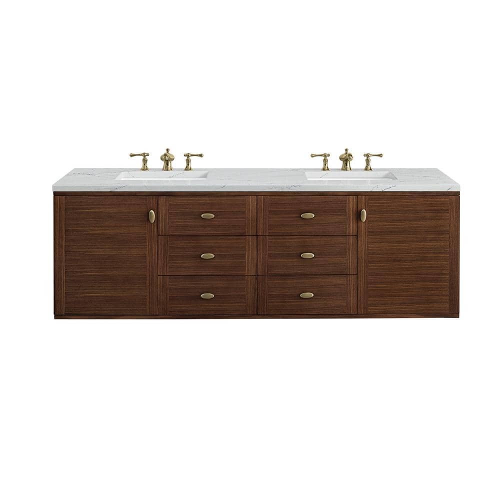 James Martin Vanities Amberly 72" Bathroom Vanity in Walnut with Quartz Top