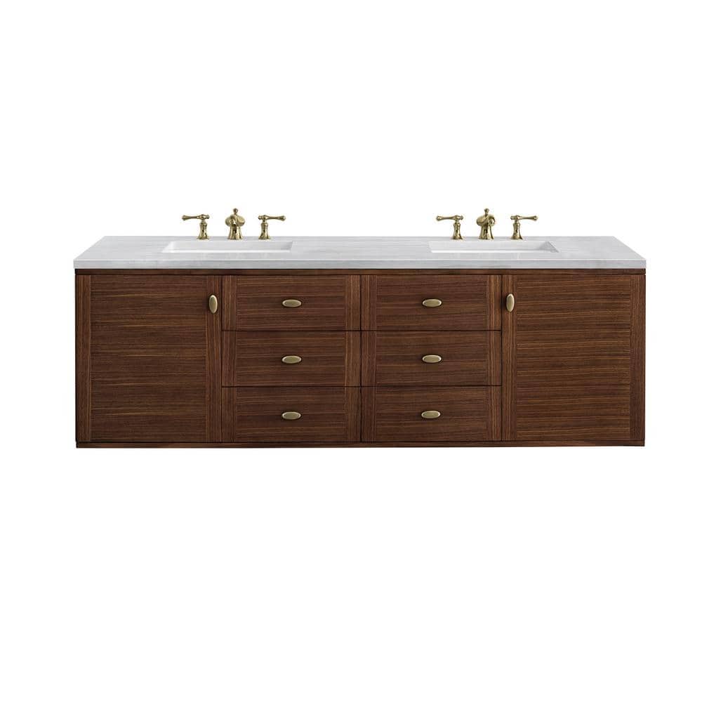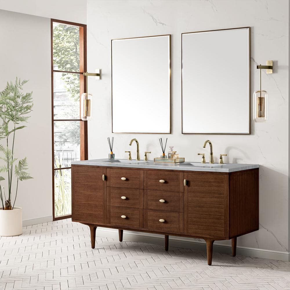 James Martin Vanities Amberly 72" Mid-Century Walnut Bathroom Vanity with Arctic Fall Top