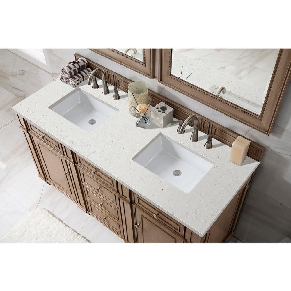 James Martin Vanities Bristol 60" Double Bath Vanity in Whitewashed Walnut with Lime Delight Quartz Top