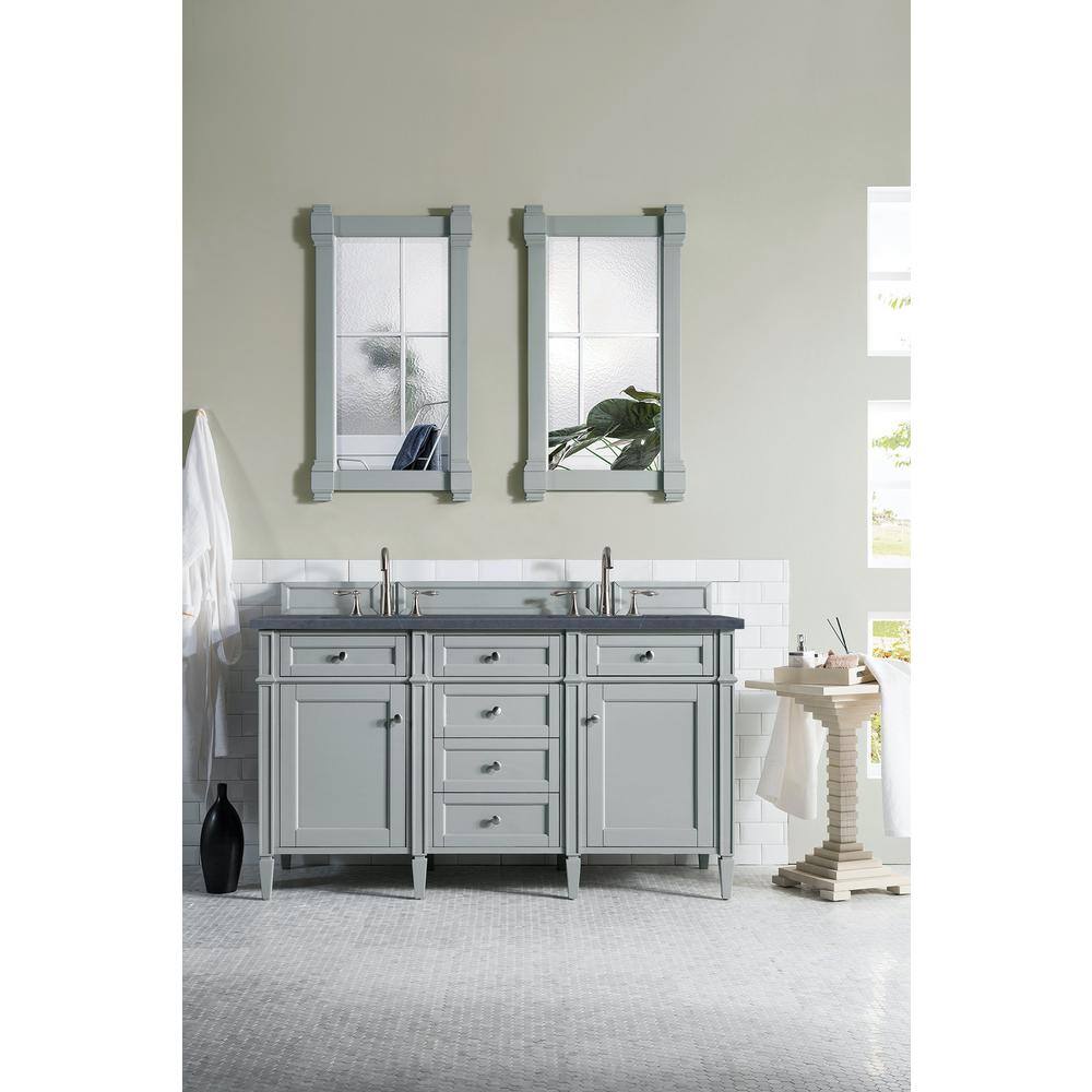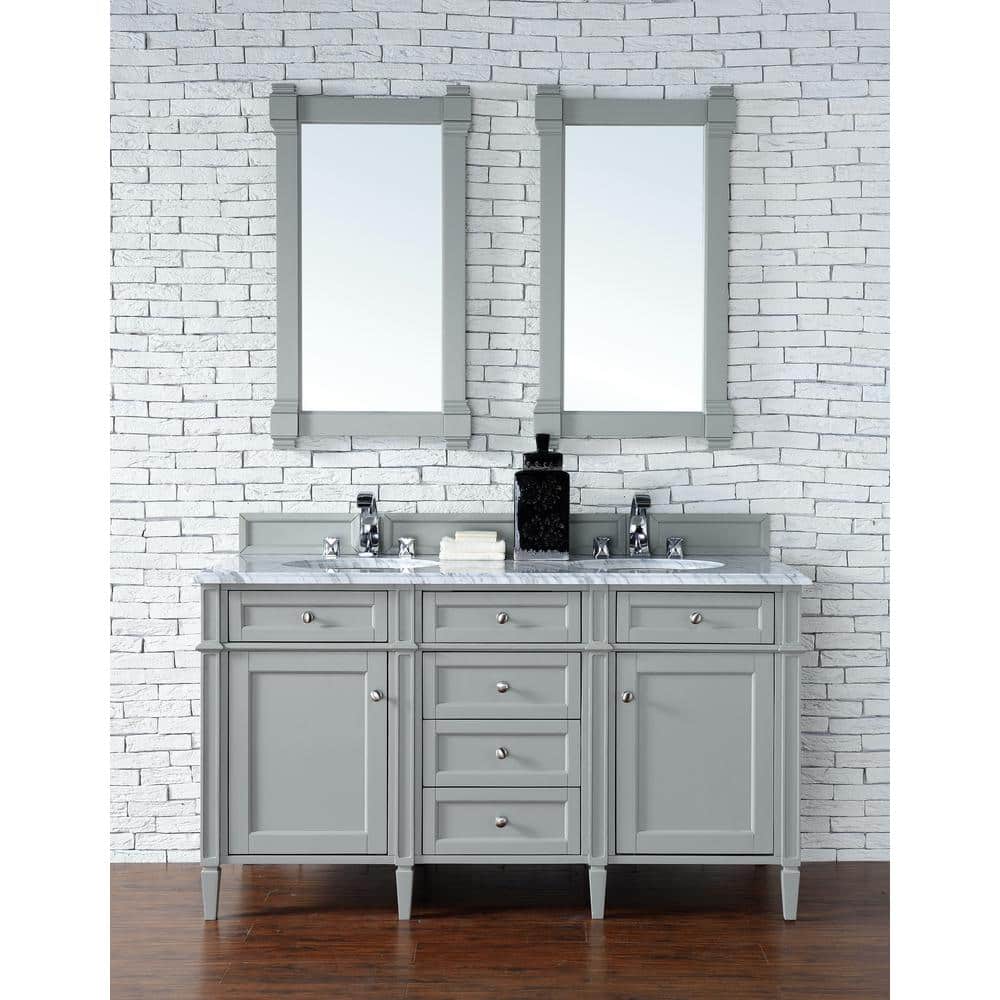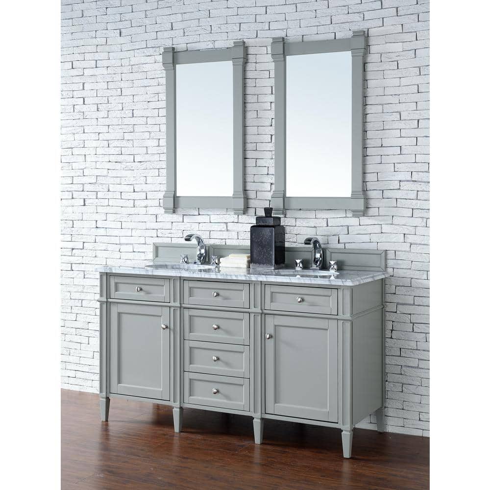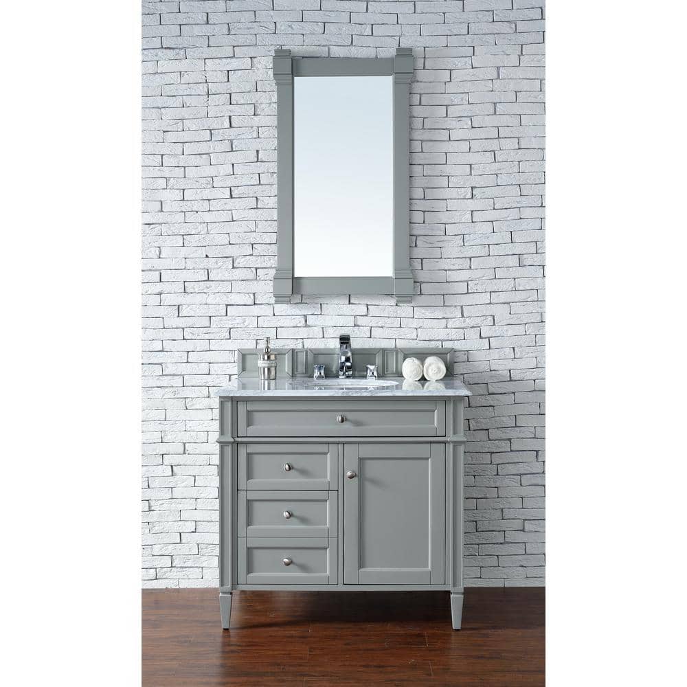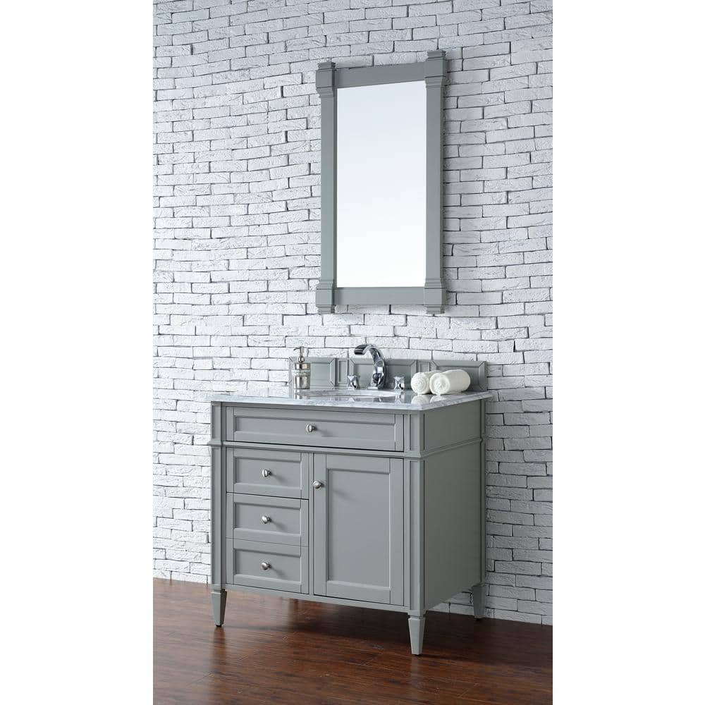 The Brittany Urban Gray Vanity Mirror by James Martin Vanities combines traditional and transitional styles, featuring a solid wood frame and a premium finish for durability and elegance.