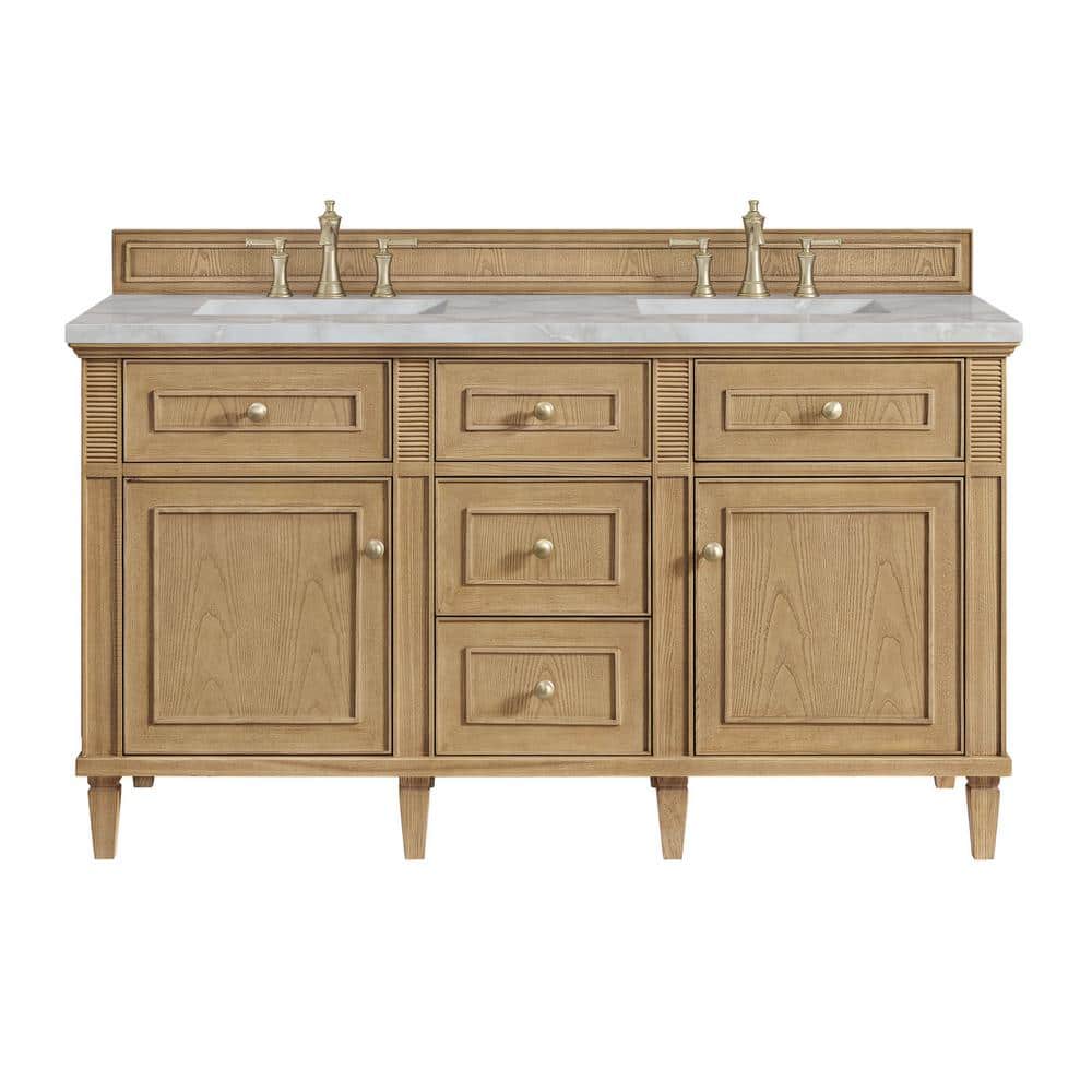 James Martin Vanities Lorelai 60" Double Bathroom Vanity in Light Natural Oak with Quartz Top