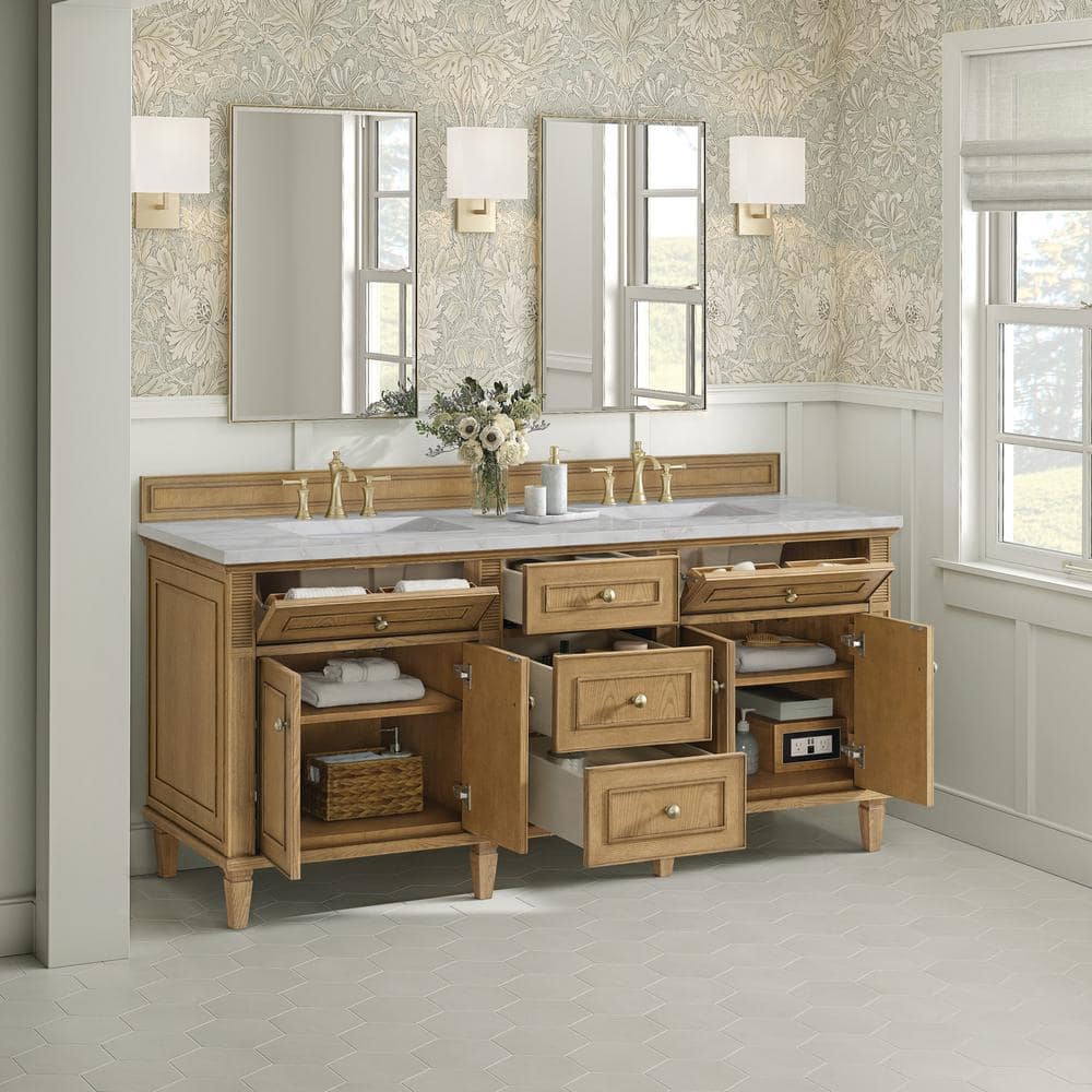 James Martin Vanities Lorelai 72" Double Bathroom Vanity with Quartz Top in Light Natural Oak
