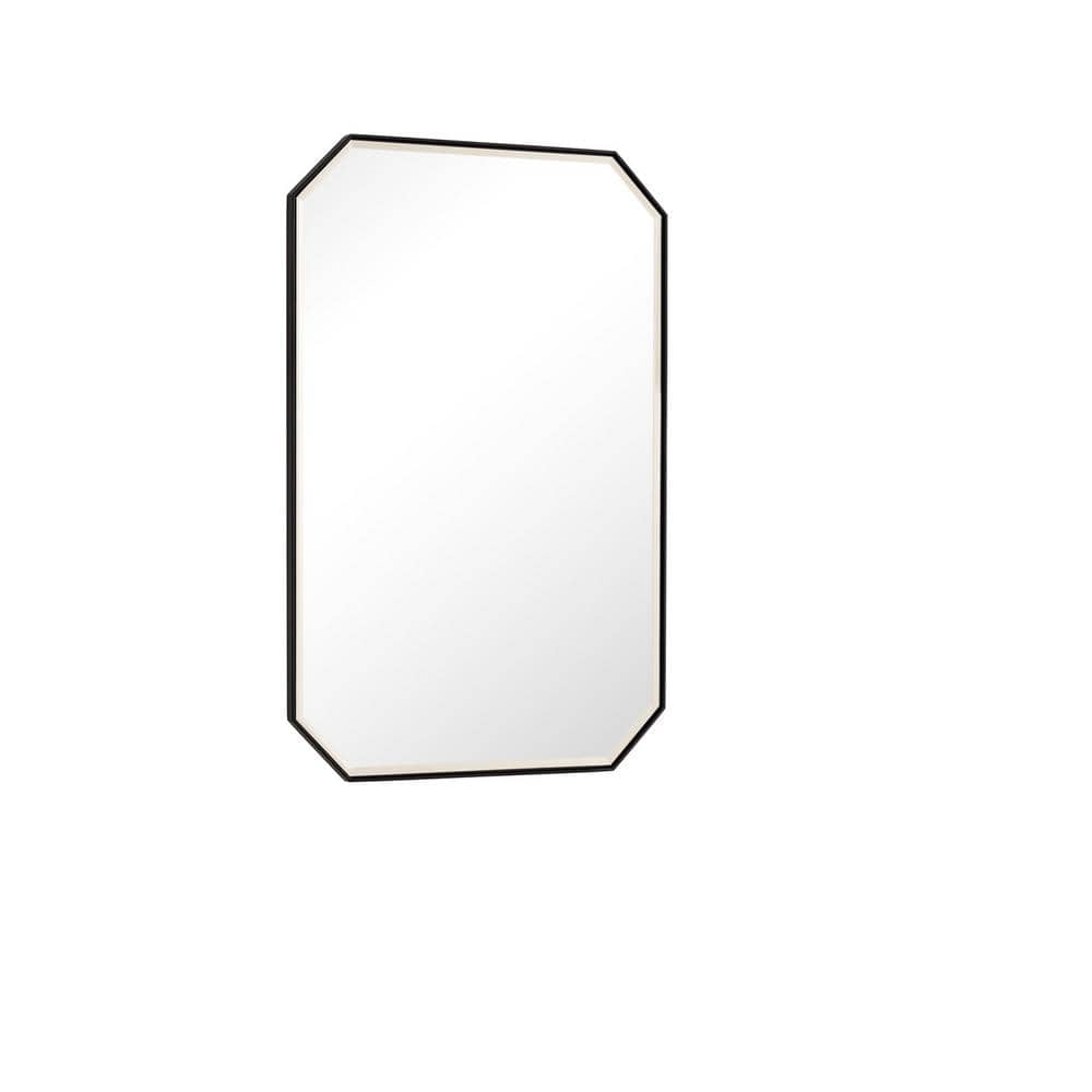 The James Martin Vanities Rohe Mirror features a sleek, matte black stainless steel frame and a beveled glass design. Perfect for modern bathrooms, it offers versatile mounting options and a timeless aesthetic.