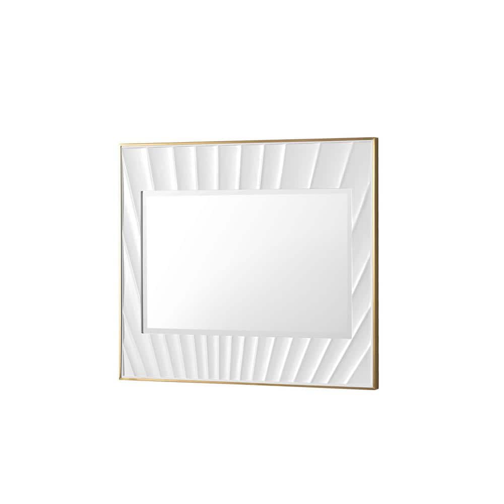 A: The mirror measures 35.9 inches in width, 31.5 inches in height, and 1.4 inches in thickness.