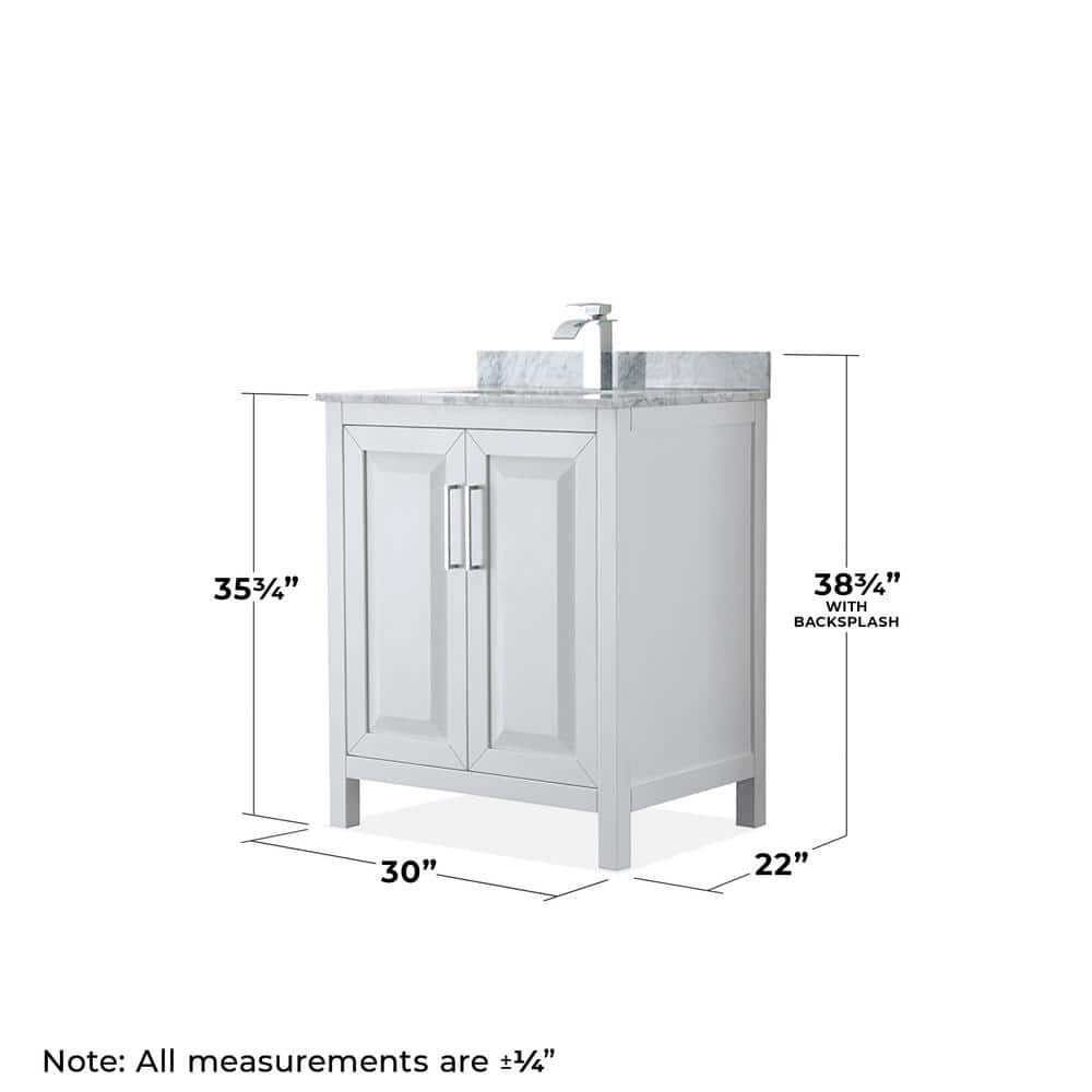 The Wyndham Collection Daria 30 in. Bathroom Vanity combines timeless design with modern functionality. Featuring a Carrara marble top and a white finish, it offers ample storage and a sophisticated look.