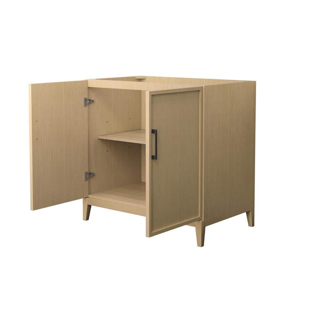 The Wyndham Collection Elan Vanity Cabinet offers a sleek and sophisticated design with its white oak finish and matte black trim. Crafted from high-quality plywood, it features soft-close doors and ample storage space, making it a perfect addition to any modern bathroom.