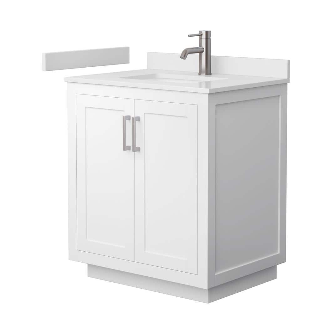 Wyndham Collection Miranda 30" White Bathroom Vanity with Cultured Marble Top