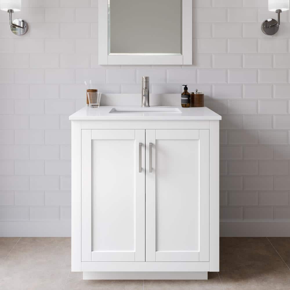 The Miranda 30" Bath Vanity by Wyndham Collection combines modern design with practical functionality. Featuring a white cultured marble top and ample storage, this vanity is perfect for any bathroom upgrade.