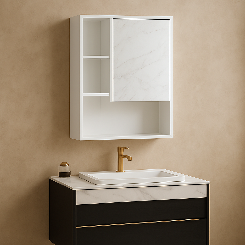 Enhance your bathroom storage with this stylish and functional mirrored cabinet—order now!