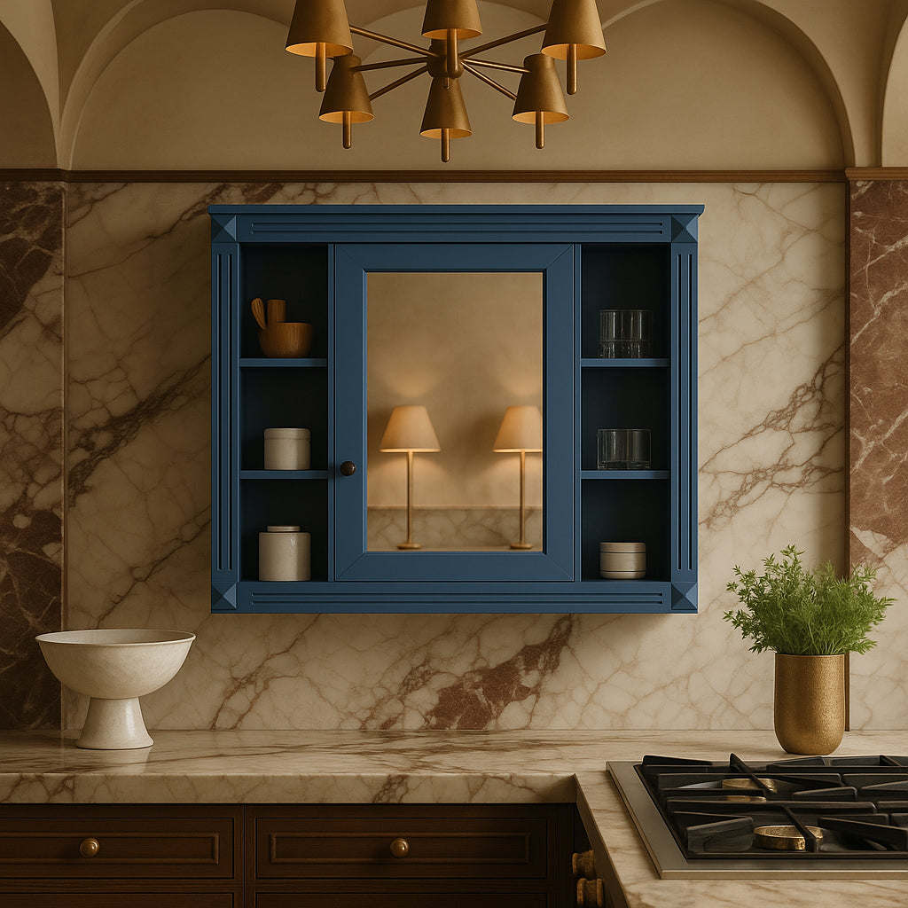 Enhance your bathroom with the stylish and functional FUNKOL Blue Wall Mounted Cabinet today!