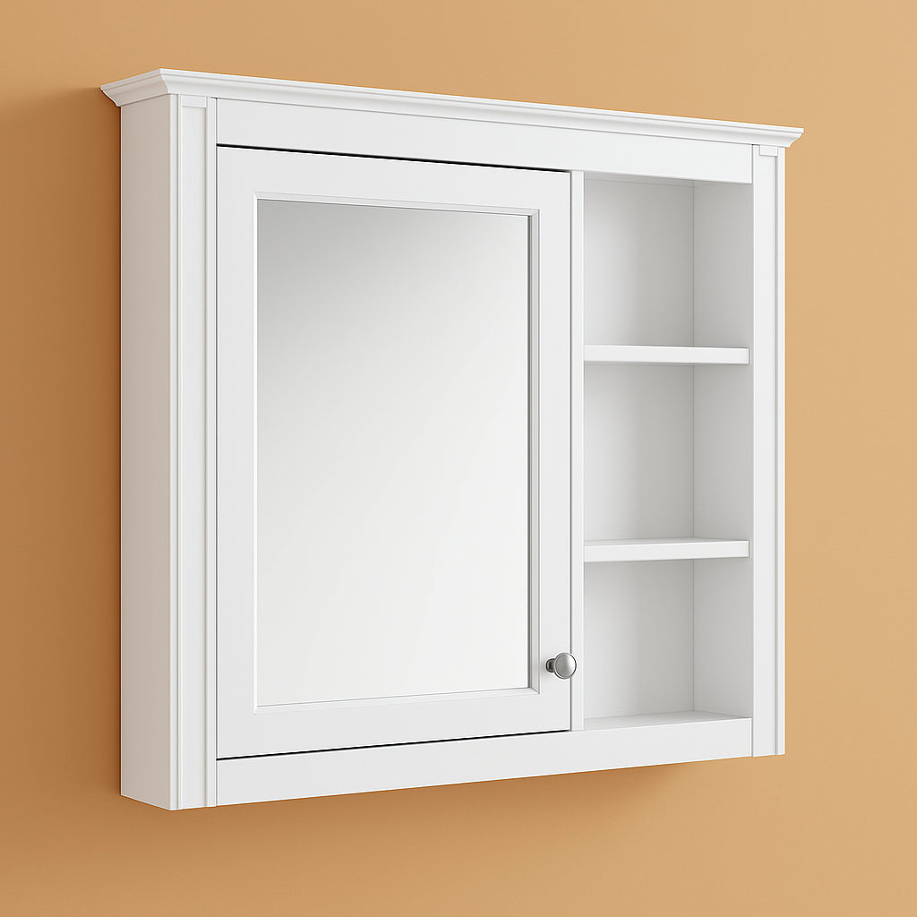 Transform your bathroom into a sanctuary of style and organization with the FUNKOL White Wall Mounted Cabinet. Its sleek design and mirrored door create a harmonious blend of functionality and elegance. Use the open shelves to display chic toiletries or decorative accents, while the concealed storage keeps essentials tidy. This cabinet is a must-have for a modern, luxurious bathroom aesthetic.