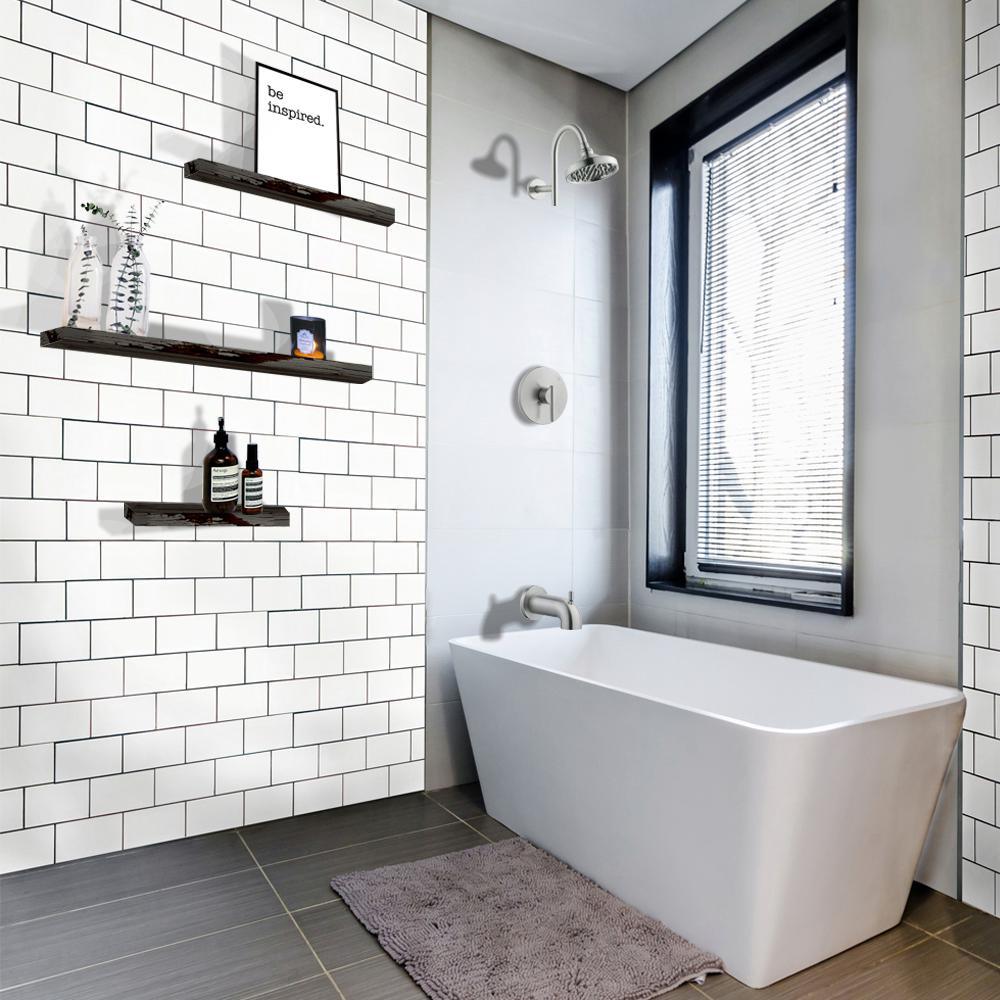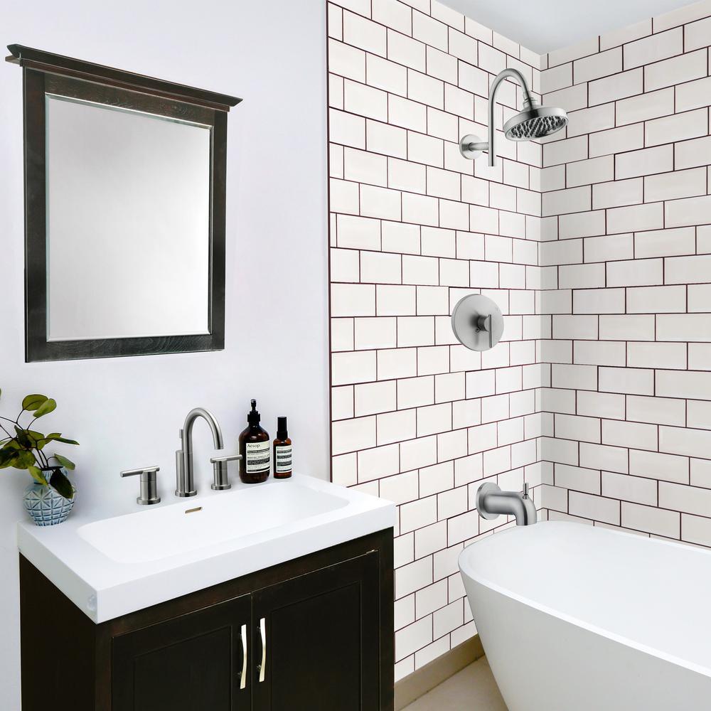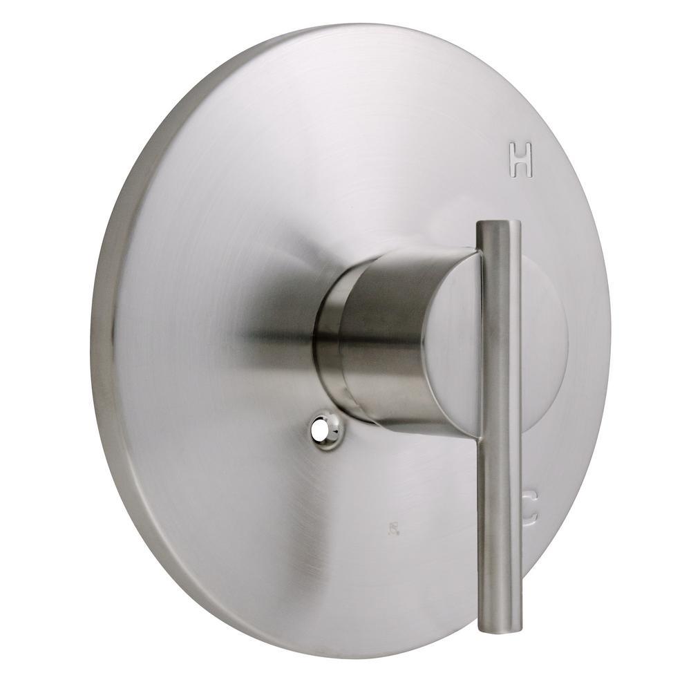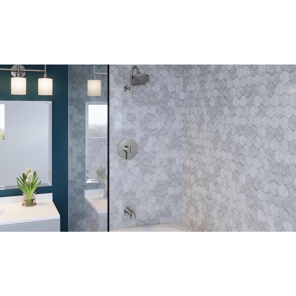 • Single handle design with a satin nickel finish to easily adjust the temperature in your bathtub or shower (valve included)