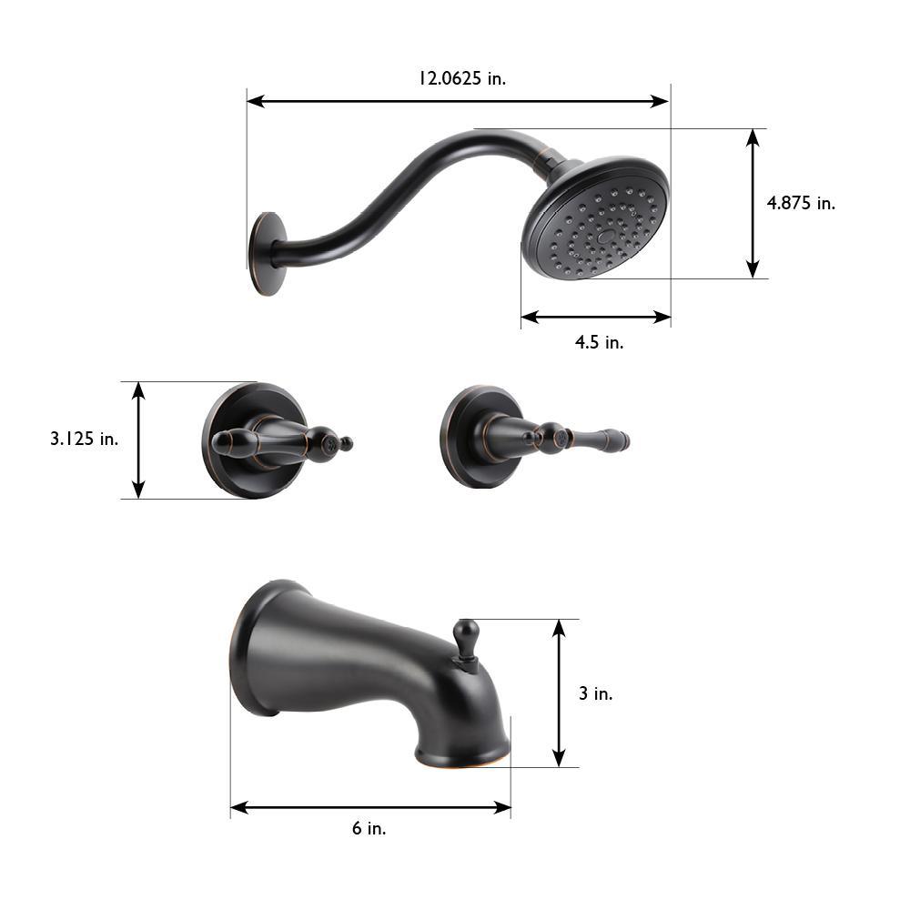 The Victorian styling of this Design House Oakmont Tub and Shower Faucet has a 2-handle configuration and comes in an attractive oil-rubbed bronze finish. Constructed from a brass valve body with a zinc alloy handle and stainless steel escutcheon, this faucet features washerless cartridges and brass waterways with a 2 GPM flow rate, ensuring a steady water flow even after years of everyday use. The WaterSense certified design uses washerless cartridges containing plastic discs with holes that align to control the flow of water and eliminate leakage problems. Easy to clean, the ABS showerhead allows you to simply wipe the rubber spray nozzle with your finger or a sponge to remove any hard water deposits and prevent lime scale buildup, keeping it looking fresh over time.