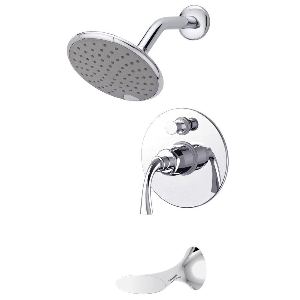 Transform your bathroom into luxury retreat with the contemporary style of the Fontaine Adelais tub and shower faucet set. The Adelais Collection features a combination of sleek lines and sweeping curves culminating in a unique modern design. This faucet set comes complete with tub and shower trim (shower head and arm, escutcheon plate, tub spout, valve handle) and pressure balance valve.