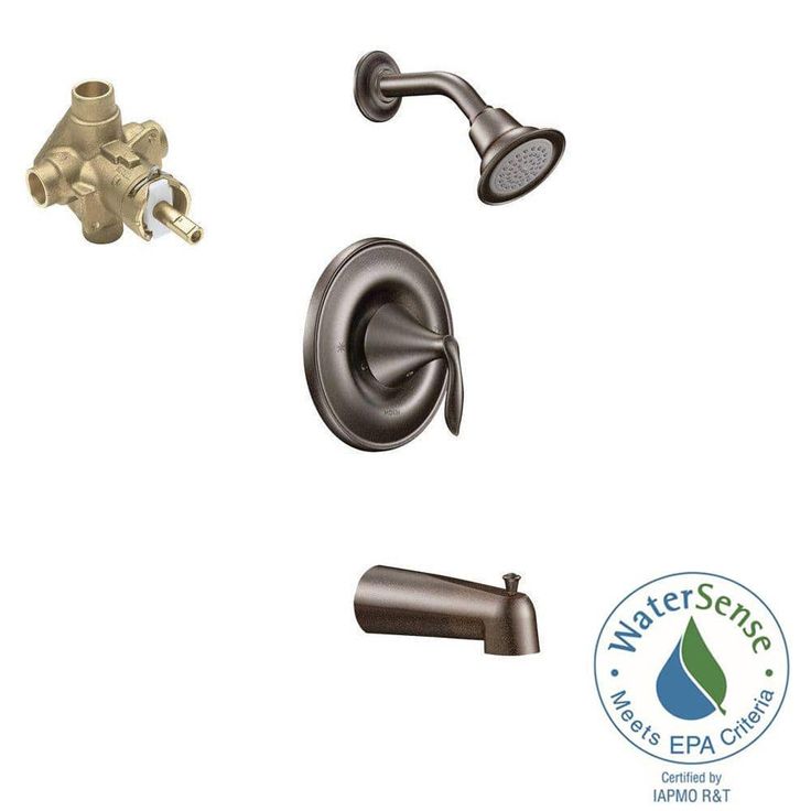 Regular price $247.37The MOEN Eva Single-Handle Single-Spray Tub and Shower Faucet in Oil-Rubbed Bronze includes templates and hardware for an easy installation. This tub and shower faucet features a classic style and graceful design that complement almost any bathroom decor. The oil-rubbed bronze finish is sure to add beauty and elegance to your tub and shower area. The Easy Clean XL single-function showerhead provides sufficient water flow of up to 1.5 GPM for a satisfying shower experience.