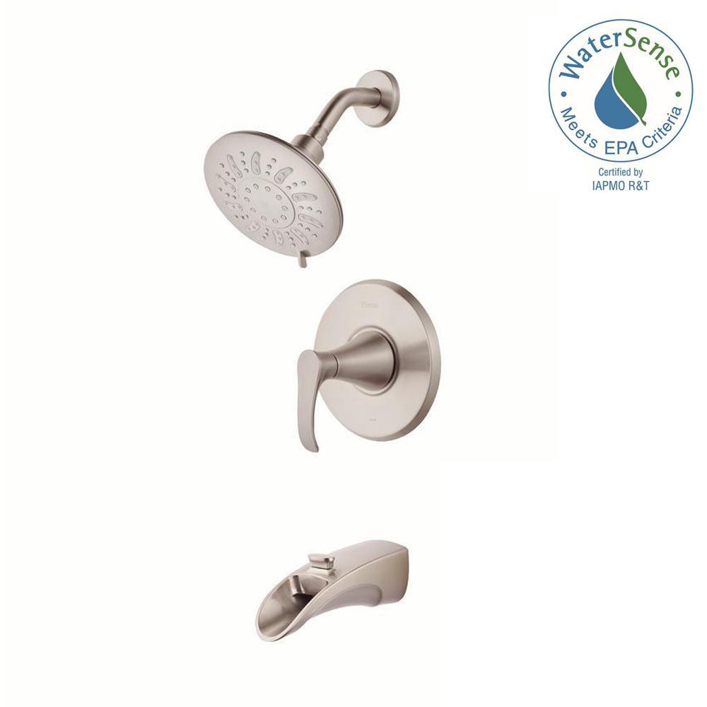 Brea Single-Handle 3-Spray Tub and Shower Faucet in Brushed Nickel with Waterfall Spout (Valve Included)