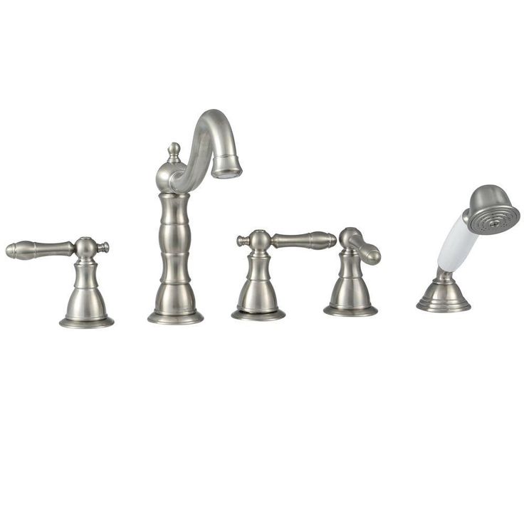 The Lyndhurst 2-Handle Deck-Mount Roman Tub Faucet with Handheld Shower from Glacier Bay seamlessly combines refined, old-world style with modern functionality. Featuring an attractive brushed nickel finish that complements any bathroom decor, the lever-styled metal handles and handheld shower offer a stylish touch and are easy to operate. Durably constructed with ceramic disc cartridges to ensure drip-free performance and WaterSense cerfified with a 1.8 GPM flow rate, this faucet coordinates beautifully with other pieces from the Lyndhurst collection to give your bathroom a sophisticated upgrade.