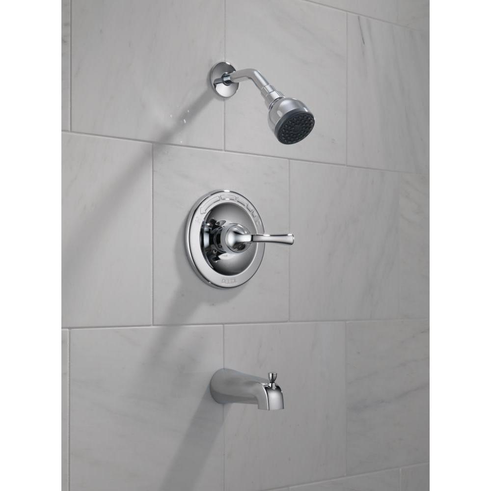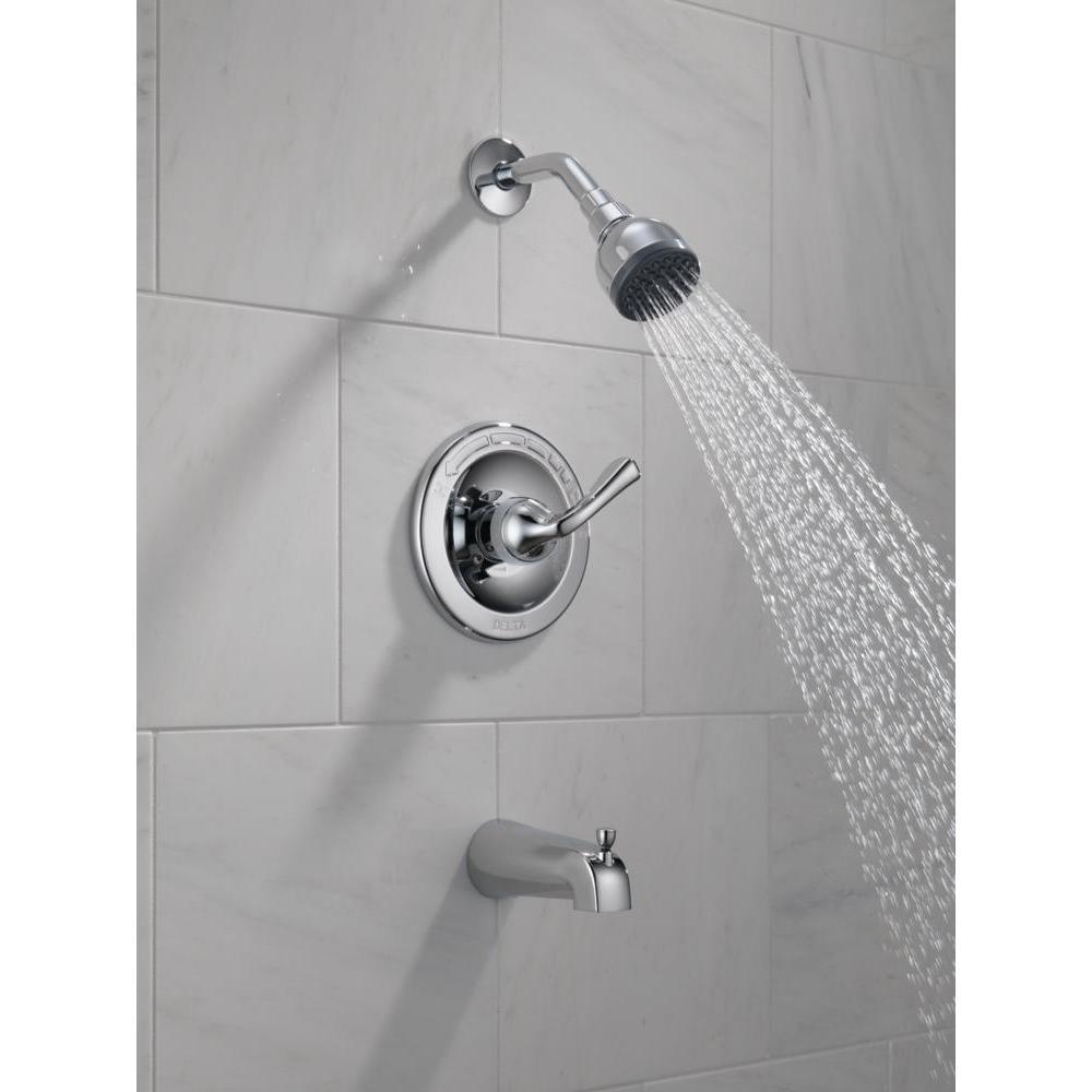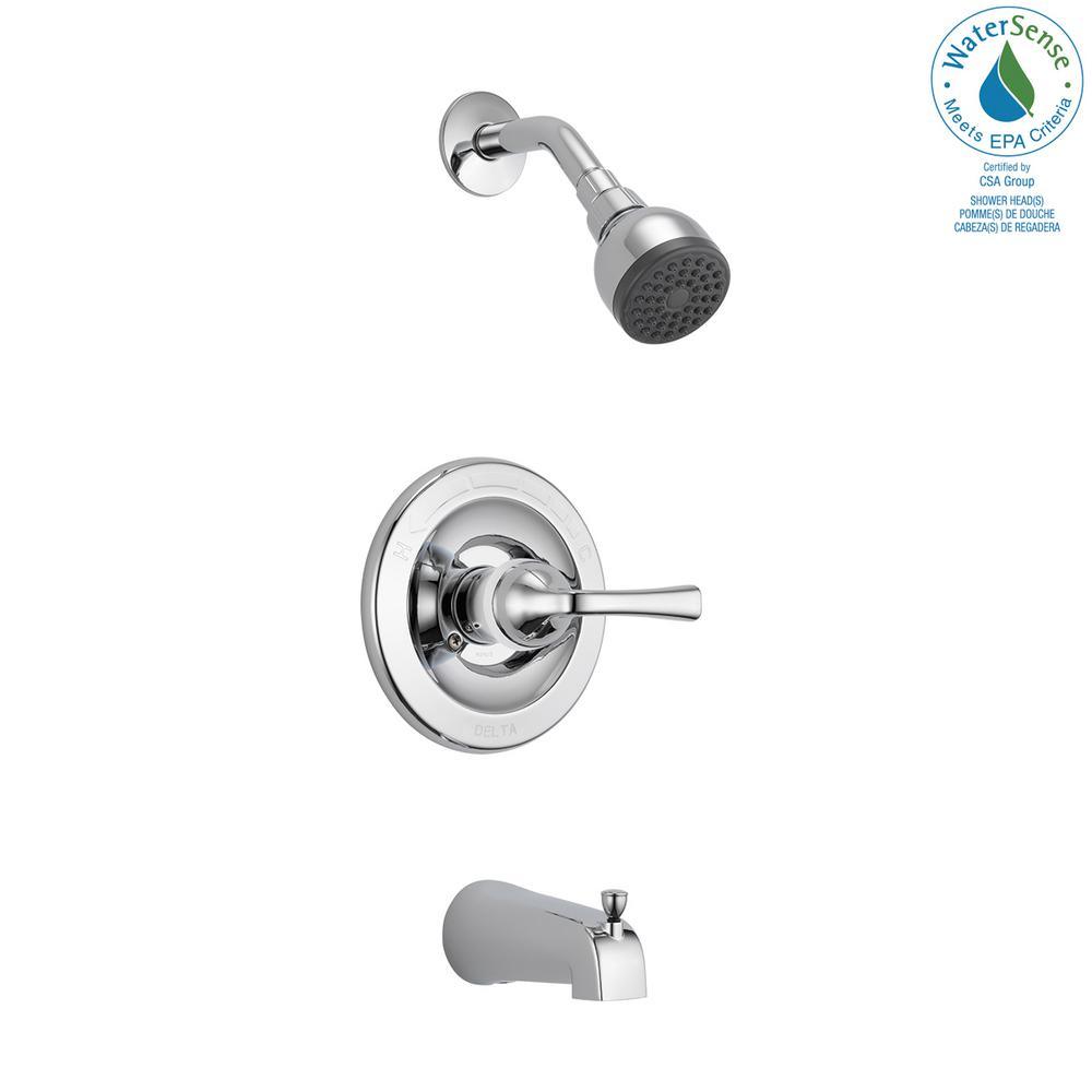 The Foundations Single-Handle 1-Spray Tub and Shower Faucet from Delta is built for today's busy home with bustling bathroom activity. Beneath its clean, understated look, this faucet offers a functional and hardworking design built to endure tough use and still perform beautifully day after day. Its single-handle lever control makes it easy to adjust temperature and volume. The environmentally friendly design is also WaterSense certified to reduce water waste, making it an efficient and responsible choice for your home.