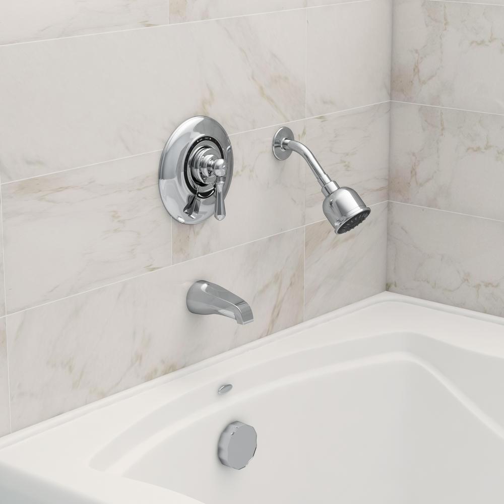 The Symmons Allura Collection offers shapely lines complemented by a comfortable design. Its cozy look and feel makes it a natural fit with most bathroom interiors. A piston style pressure balancing valve equalizes the hot and cold water pressure as other demands are made on the plumbing system, so you can enjoy a comfortable shower while someone else is washing dishes.